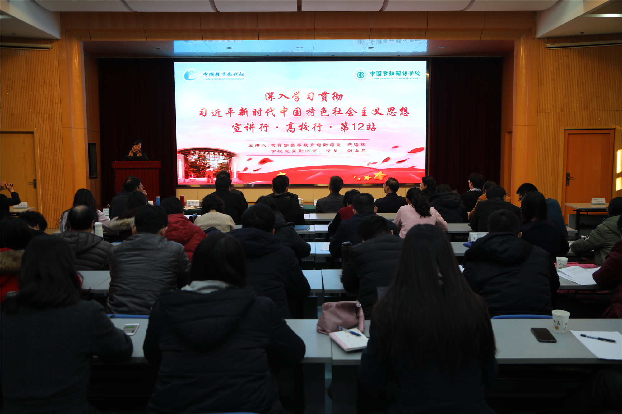 12月24日下午,中国教育报刊社“深入学习贯彻习近平新时代中国特色社会主义思想宣讲行·高校行”大型主题活动第12站暨万象城官网党委理论学习中心组学习(扩大)会议在北京校区教学楼508教室举行。教育部高等教育司副司长范海林、《中国高等教育》总编辑唐景莉,万象城官网领导刘向兵、成国一、刘玉方、刘丽红及党委常委燕晓飞、杨冬梅、姜颖出席活动。各党总支书记(副书记)、教工党支部书记,相关职能部门全体工作人员及教师代表参加了活动。活动由唐景莉总编主持。