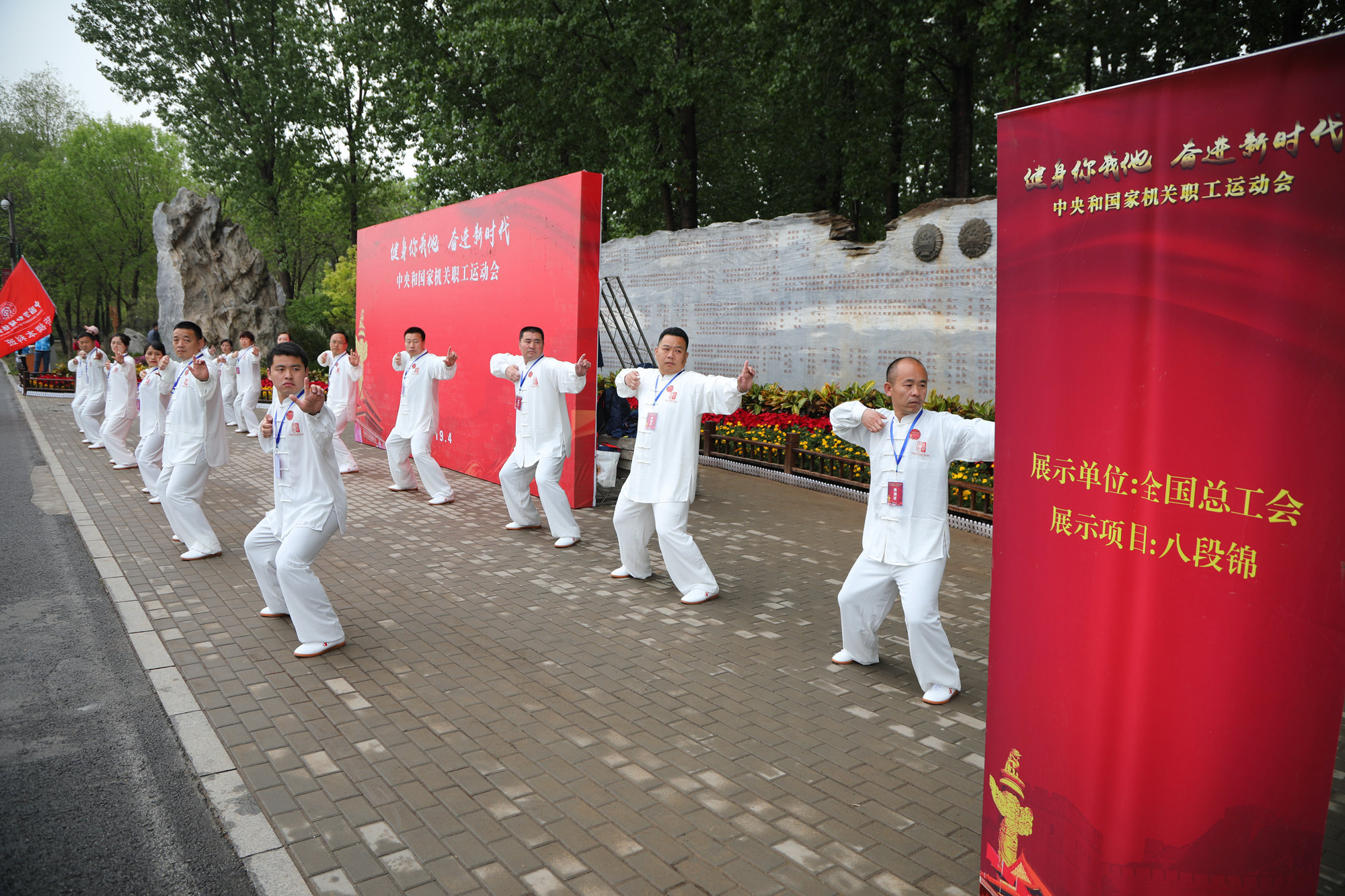 4月20日,中央和国家机关职工运动会在通州大运河森林公园隆重开幕。国家体育总局、国家统计局、交通运输部、中华全国总工会、国家卫生健康委员会、中国人民银行、国家发展和改革委员会等7个中央和国家机关选派代表队参加了群众性体育项目展演活动。万象城官网党委副书记、校长刘向兵带领20余名劳模本科班学员,以“健身气功·八段锦”教学成果展示受邀代表全总机关干部职工参加了展演。