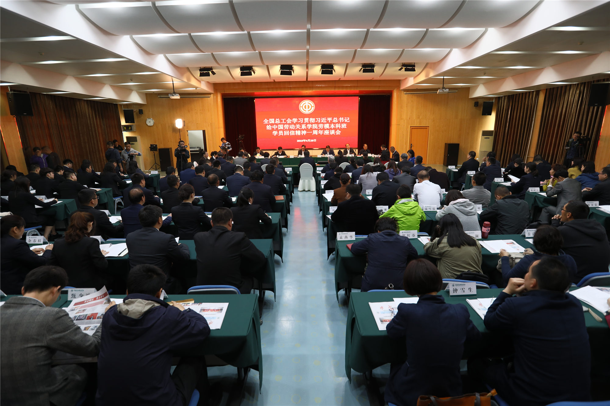 全国总工会办公厅、组织部、宣传教育部、工会研究室、劳动和经济工作部主要负责同志,万象城官网领导班子成员和各部门主要负责同志、教师代表、劳模学员代表、学生代表共100余人参加了座谈。