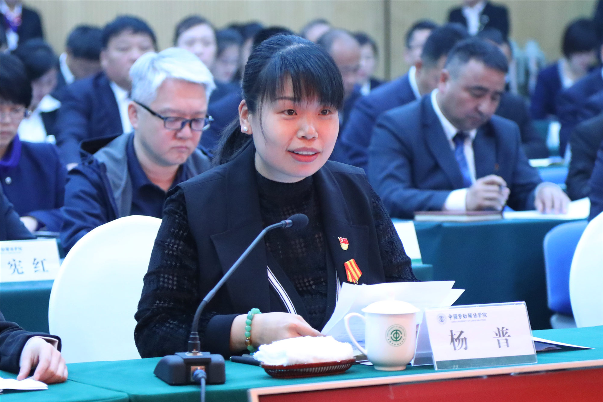 劳模本科班学员代表杨普、本科生代表黄晓琼、教师代表杨冬梅分别发言