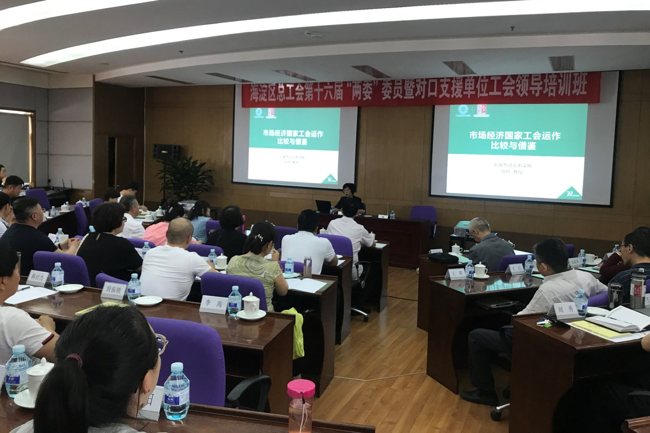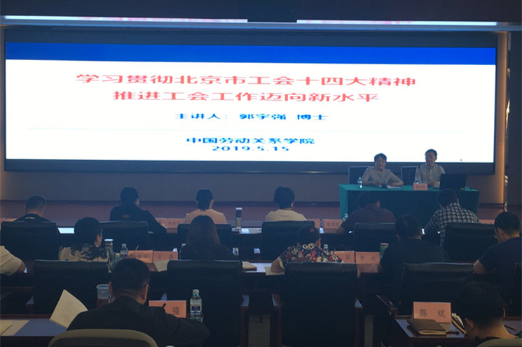 第27场:5月13日,劳动关系系郑桥教授赴海淀区总工会以《市场经济国家工会运作的比较与借鉴》为题做讲座。讲座对象为海淀区总工会第十六届委员和对口支援单位内蒙古兴安盟科尔沁右翼前旗总工会的工会干部。郑教授从国际比较的角度,为工会主席介绍了市场经济国家工会的组织构架、活动方式、维权途径以及在劳资关系调整中的定位,分析了工会运作的特点,并归纳梳理了值得学习借鉴的经验。