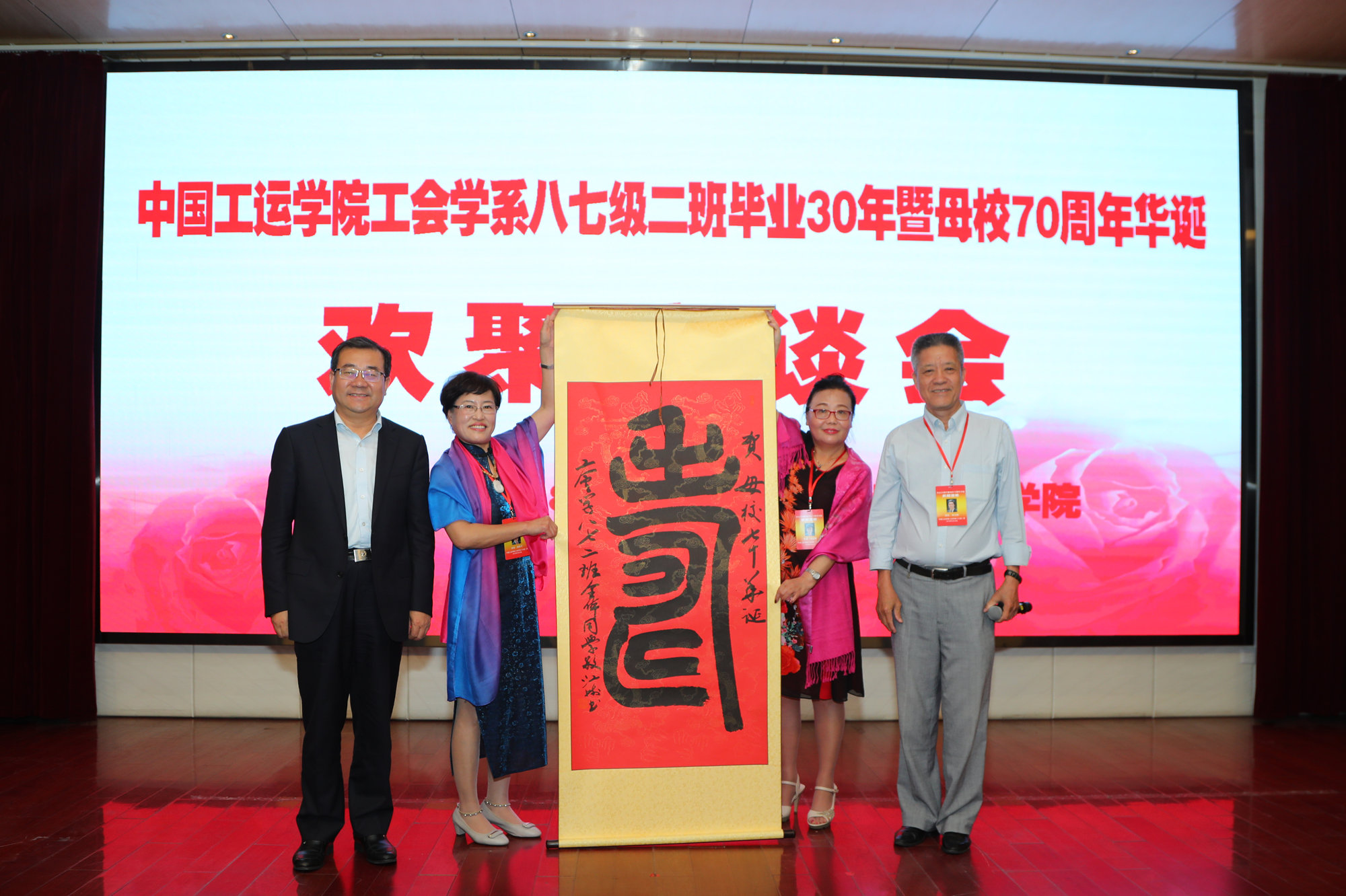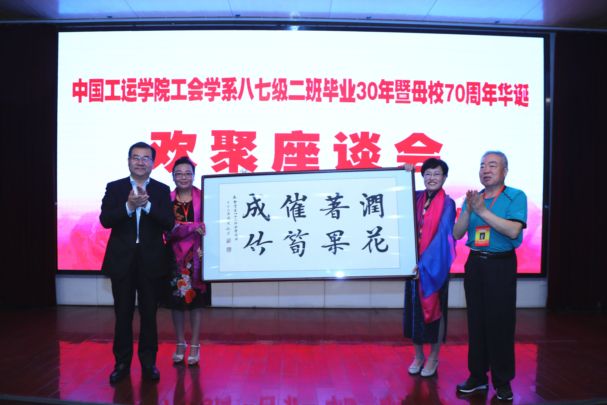 弹指三十年,师恩永难忘。1987级校友们向恩师鞠躬敬礼,表达了对恩师的尊重和感谢,场面温馨感动。校友们纷纷发言,回忆起在学校就读的点点滴滴,介绍了自己生活工作的心路历程。他们表示,回望30年,学校的培养、老师的教诲和同学的友谊,都是人生最宝贵的财富;追溯自己的人生轨迹和事业发展,处处都渗透着母校教育深深的烙印。他们对新工会学院的创新发展充满期待,衷心祝愿老师们身体健康,祝愿母校蓬勃发展、再创佳绩、越来越好。会上还举行了1987级校友书法作品、校史资料捐赠仪式。