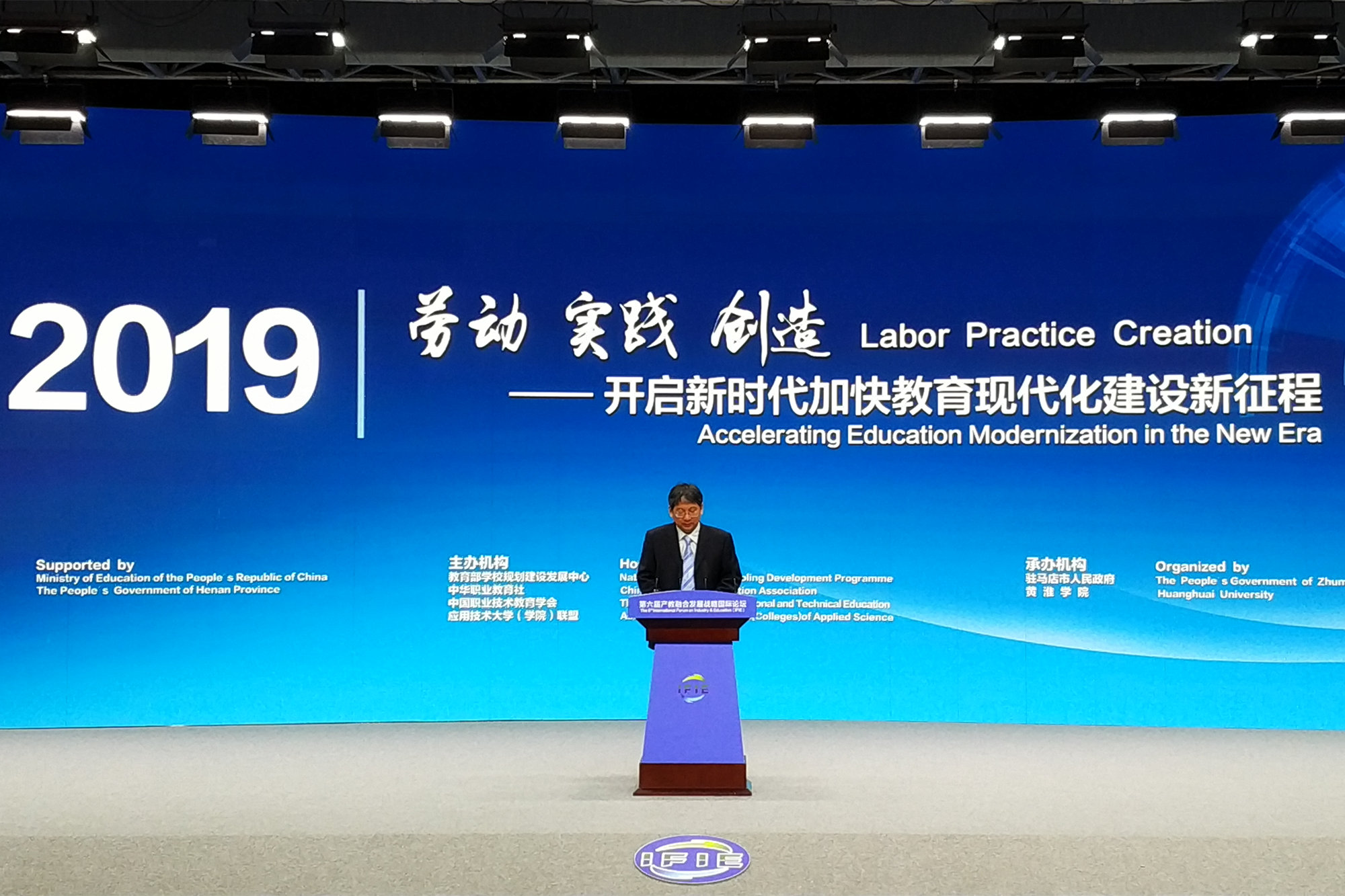 5月17日,由教育部学校规划建设发展中心、中华职业教育社、中国职业技术教育学会、应用技术大学(学院)联盟主办,驻马店市人民政府、黄淮学院承办的第六届产教融合发展战略国际论坛在河南省驻马店市召开。论坛的主题是:“劳动·实践·创造——开启新时代加快教育现代化建设新征程”。河南省委常委、宣传部长、省委高校工委书记江凌,驻马店市市委副书记、市长朱是西分别在开幕式上致辞。中央国家机关工委原副书记、工会联合会主席陈存根,十二届全国人大常委会副委员长、中华职业教育社十一届理事会理事长陈昌智先后发表主旨讲话。