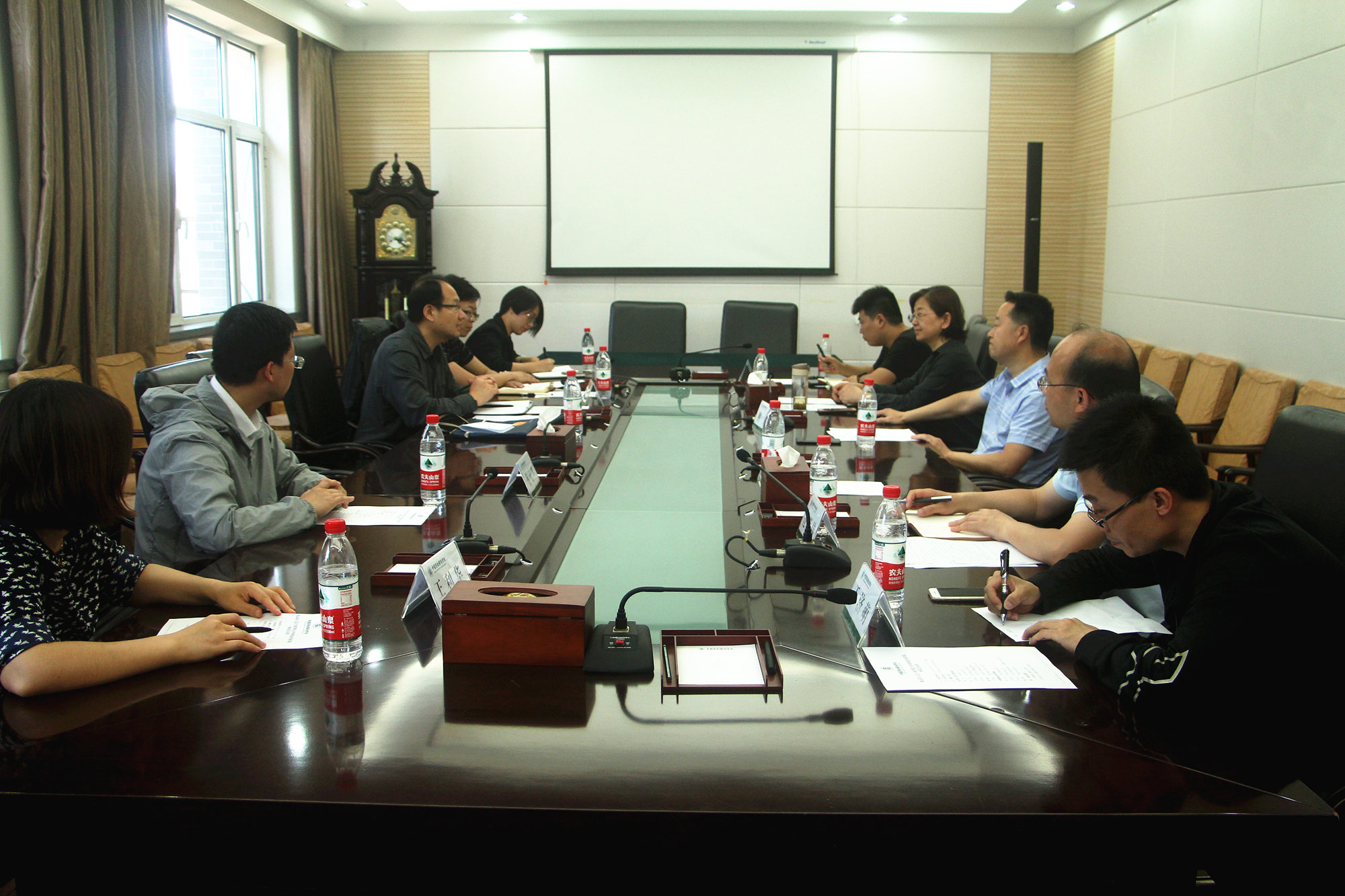 会上,万象城官网资产管理处处长李东和副处长王大为分别从在建项目的工作流程、审批程序、报建注意事项、项目过程管理、造价控制等方面作了经验分享。网络信息中心副主任蔡元萃介绍了校园信息化建设项目立项审批、项目管理、网络安全等情况。双方就如何打造绿色、智能化校园以及房屋改造注意事项等内容进行了深入交流。
