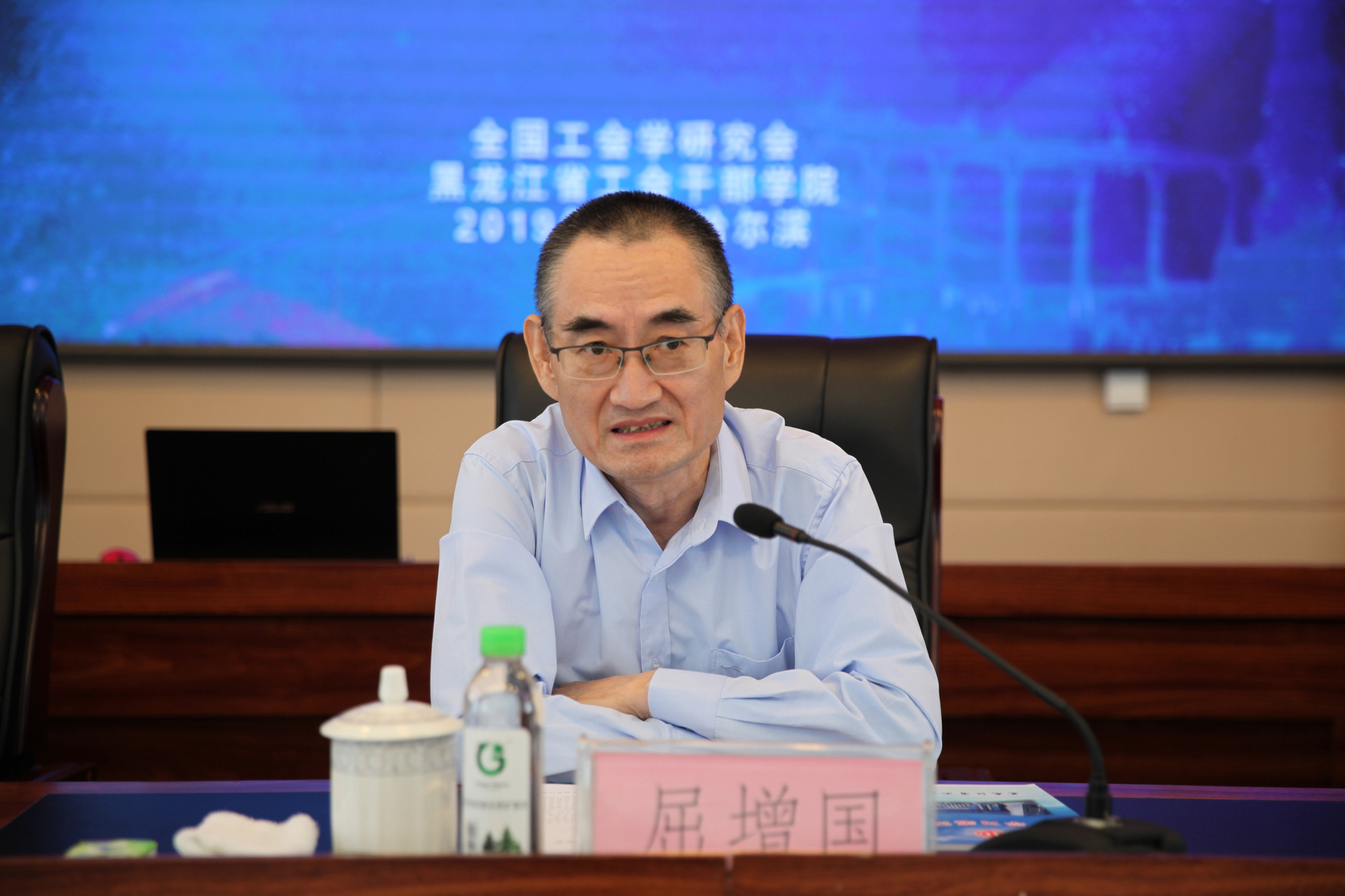 于国君副主席致欢迎辞,对会议的召开表示祝贺,并介绍了黑龙江工会干部学院的发展情况、黑龙江省的省情与会情。屈增国会长在讲话中,结合中国工会十七大会议精神,围绕会议主题提出三点要求:一是要认真总结新中国成立以来工会工作的六条基本经验; 二是要深入分析当前工会工作面临的机遇与挑战;三是要正确处理继承与创新的关系。他强调,要继续加强对习近平新时代中国特色社会主义思想特别是关于工人阶级和工会工作重要论述的学习研究,加大对“四个立足”的研究力度,进一步加强对工会改革创新的研究,推动工会理论和实践创新。