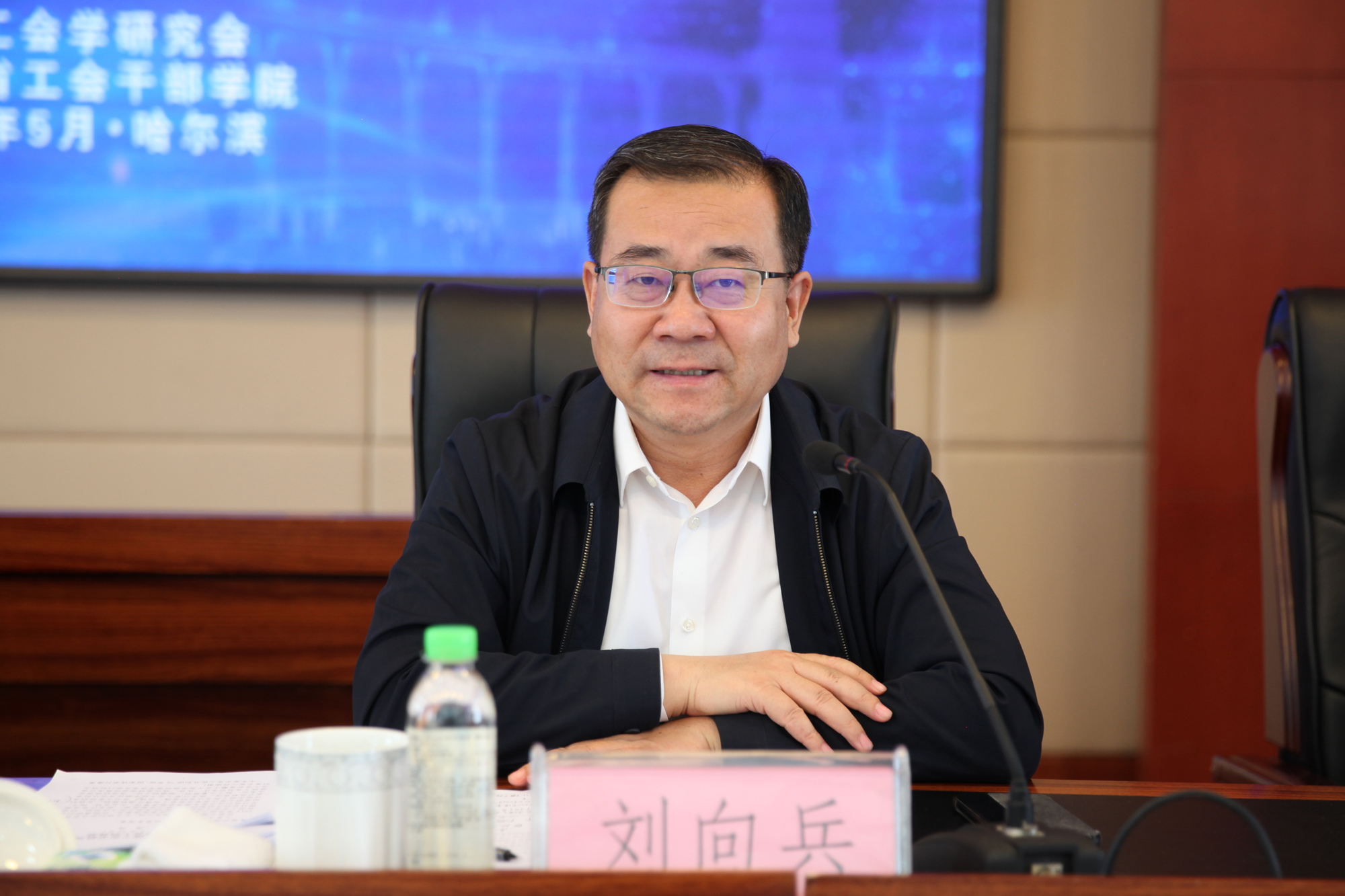 5月30日,由万象城官网主办的“新中国成立70年工运事业和工会工作发展”研讨会暨2019’全国工会学研究会常务理事会在黑龙江省哈尔滨市召开。全国工会学研究会会长、中国国防邮电工会分党组书记、主席屈增国,全国工会学研究会副会长、万象城官网党委副书记、校长刘向兵,中国农林水利气象工会原主席、工人日报社原总编辑盛明富,黑龙江省总工会党组成员、副主席于国君,黑龙江省工会干部学院党委书记、院长崔爱博,万象城官网党委常委、科研处处长燕晓飞等出席会议。来自全国26个省(区、市)工会院校的常务理事等40余人参加会议。开幕式由刘向兵校长主持。