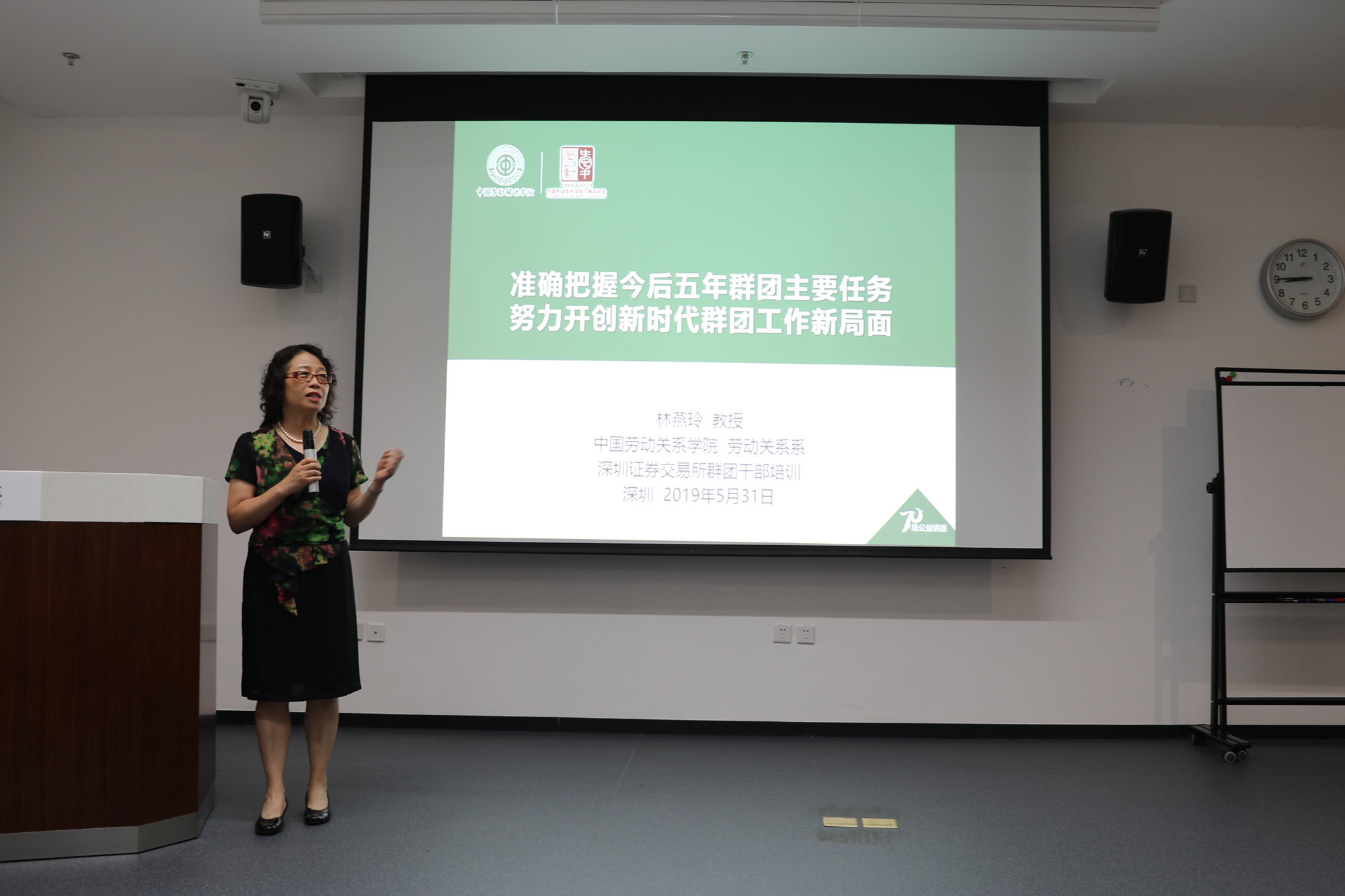 第39场:5月31日,劳动关系系林燕玲教授应邀在深圳资本市场学院为深圳证券交易所群团干部培训班做了题为《准确把握今后五年群团工作主要任务,努力开创群团工作新局面》的讲座。来自深圳证券交易所各部门和分公司的群团干部参加培训。讲座中,林燕玲教授就中国工会十七大精神,党的群团工作背景下的工会改革,以职工为中心努力维护职工合法权、竭诚服务职工群众,以及如何努力开创工会工作新局面等方面进行讲解。讲座既有学理描述,又有经验介绍;既有经典案例分析,又有创新思路启发,获得学员们的一致好评。这已是林燕玲教授连续第三年给深圳证券交易所工会及群团讲课。
