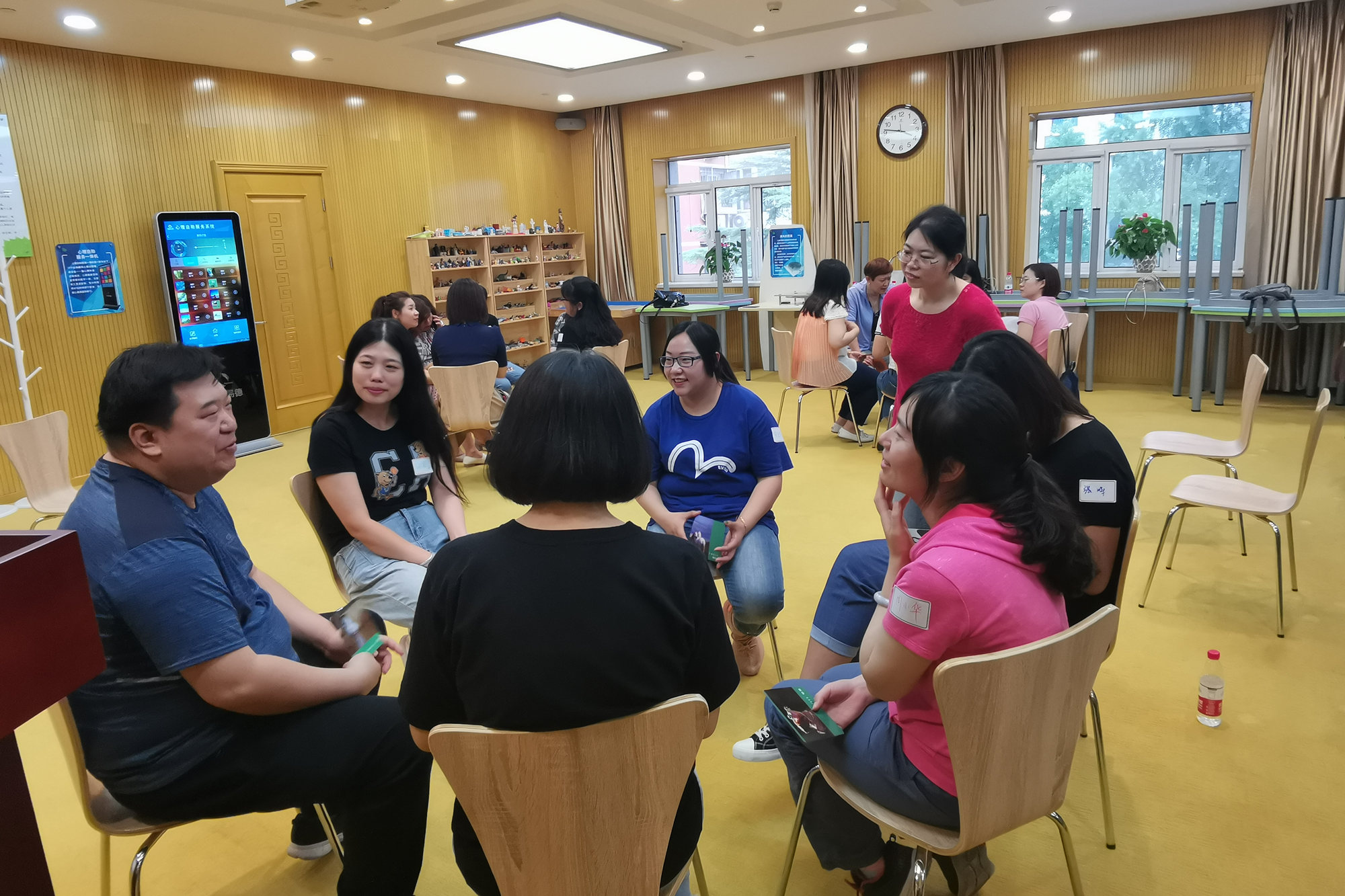 第43场:6月12日,工会学院阳辉副教授应北京市总工会的邀请,以《让心理剧走进职工》为题为北京联通公司20名员工进行了亲子关系的主题团体辅导。通过动物卡、社会剧等活泼形式以及角色扮演、角色互换等技术,让员工分享了自己平时与孩子的互动情况,同时让他们切身体会到孩子在听从家长要求、对家庭有所期待时的真实感受。培训结束后,学员们都很受启发,纷纷表示要从自身做起,多多站在孩子的角度想问题,以新的方式与孩子进行沟通互动。
