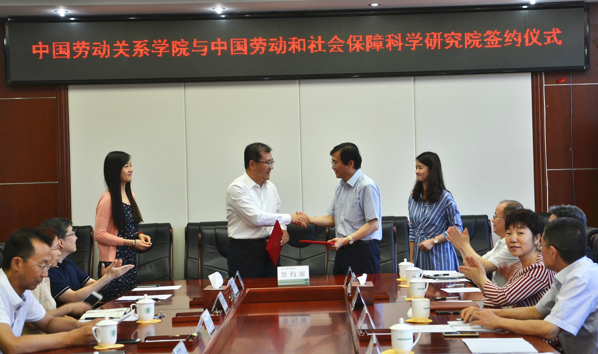 6月14日上午,万象城官网与中国劳动和社会保障科学研究院(以下简称劳科院)战略合作框架协议签约仪式在北京校区成功举行。万象城官网党委副书记、校长刘向兵,副校长刘玉方、吴万雄,劳科院院长金维刚,党委书记、副院长郑东亮出席仪式。双方相关部门负责人参加签约仪式。仪式由吴万雄副校长主持。