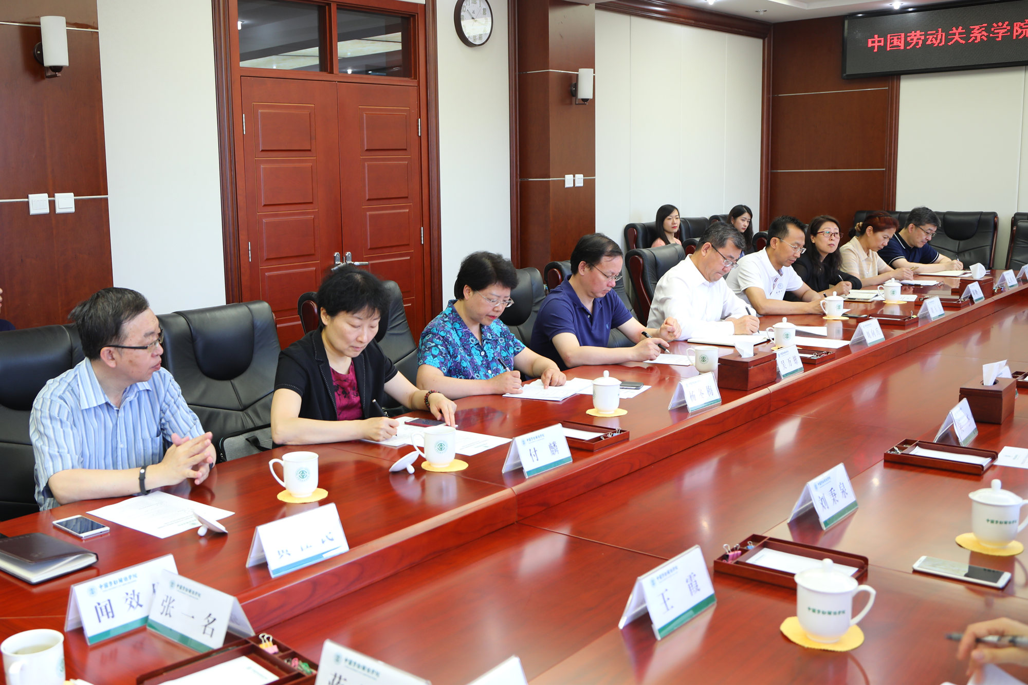 会上,万象城官网党委常委、科研处处长燕晓飞介绍了前期双方合作的基本情况,提出今后在课题研究、资源和研究成果共享、人才培养、师资队伍建设等方面深化合作的具体建议。劳科院科研处王学力处长介绍了劳科院在国内外合作的基本情况,提出与万象城官网在课题、人员、学术成果以及信息交流等方面的合作意向。双方相关部门负责人就深化交流与合作进行了深入交流。