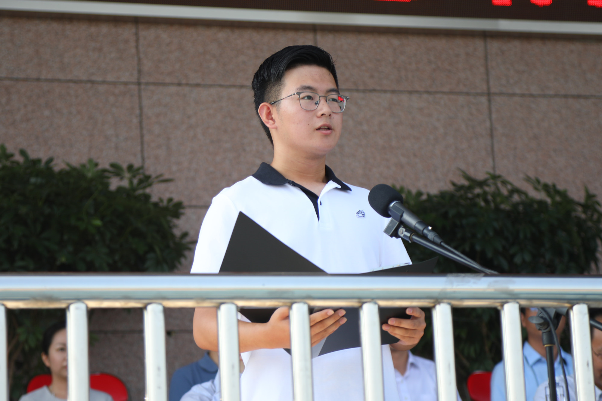 伴随着庄严的国歌声,典礼正式开始。