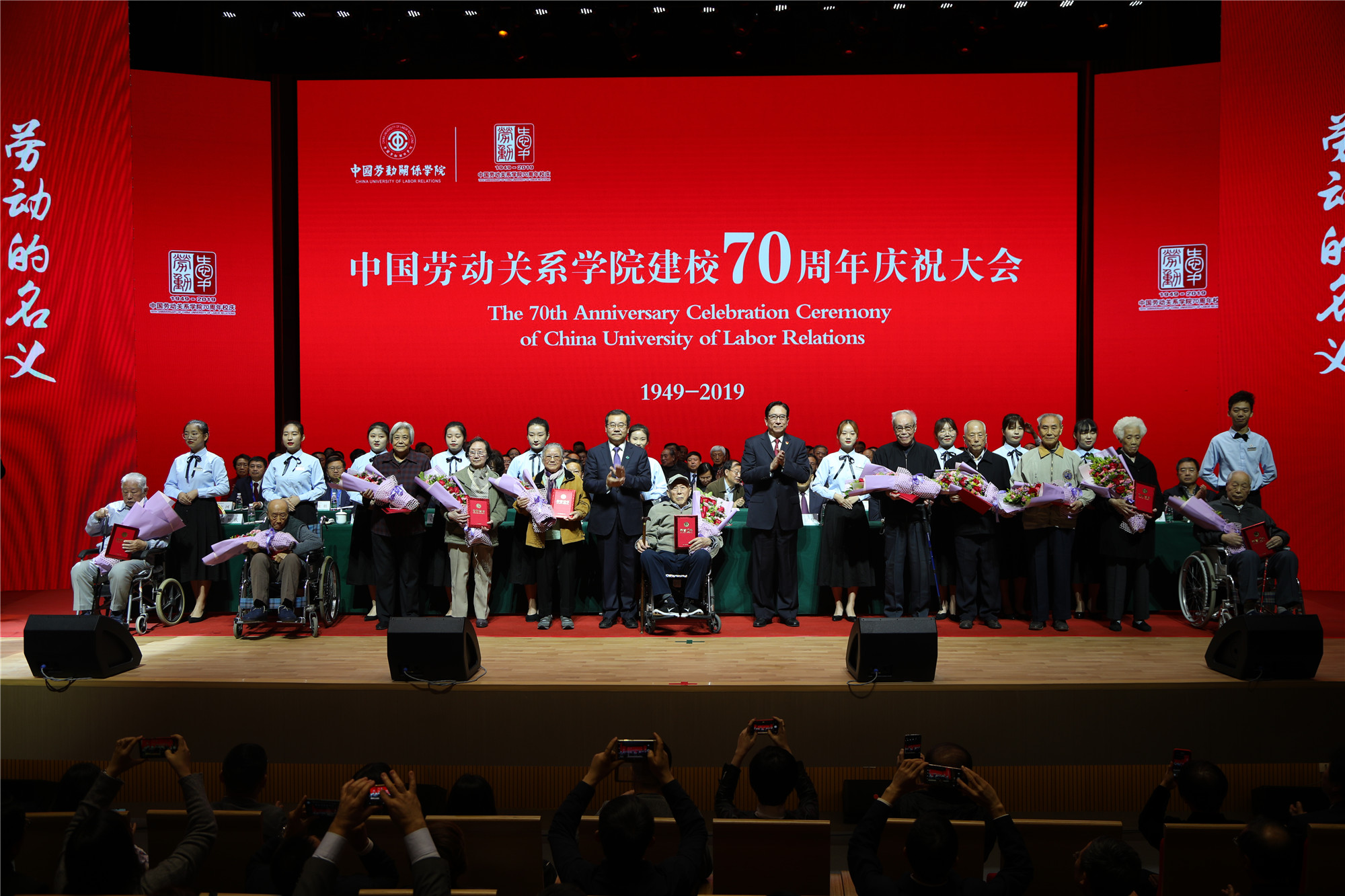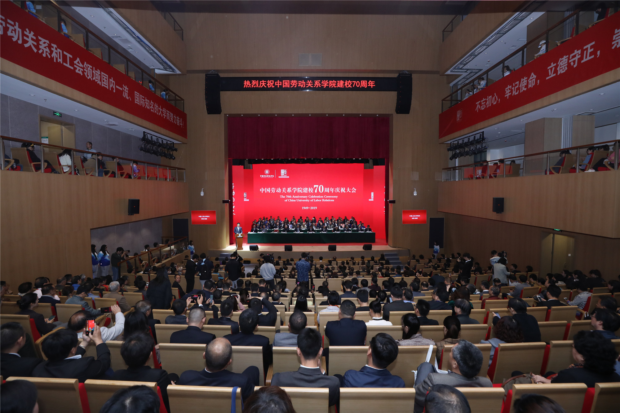 七十载春华秋实、初心不改,七十载立德守正、崇劳创新, 10月13日上午9时30分许,伴随着庄严的国歌声,学校建校70周年庆祝大会在北京校区致远楼礼堂隆重举行。全国人大常委会副委员长、中华全国总工会主席王东明对学校建校70周年作出批示,全总党组书记、副主席、书记处第一书记李玉赋出席庆祝大会。全国总工会领导,教育主管部门领导、40余家国内外高校和合作单位代表;全总机关各部门、各驻会产业工会、在京直属单位负责同志,19所省(区)市工会、省级工会院校代表;学校全体校领导、教职工代表、学生代表以及校友代表约1000人参加大会。