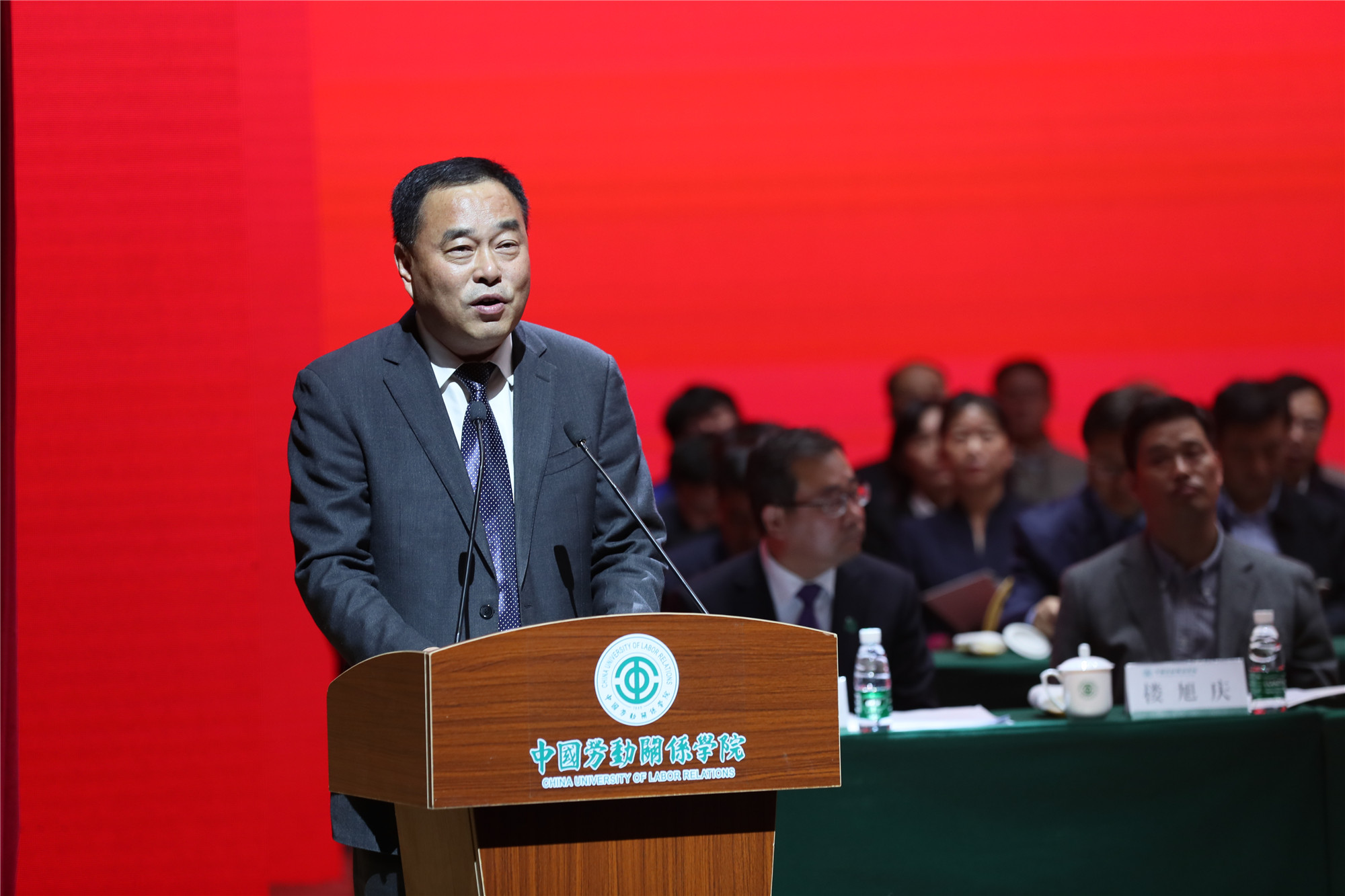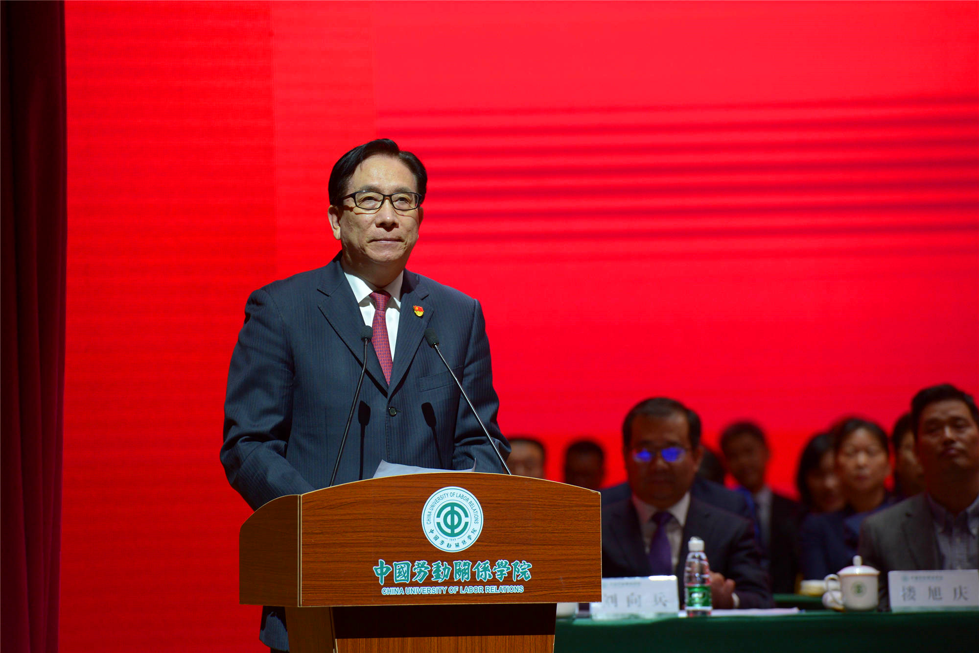 学校党委书记刘向兵在讲话中回顾了学校70年来的光辉历程和办学成就,并对办学初期的开拓者们、前辈们致以崇高敬意,向关心学校发展的各级领导、教职员工表达衷心感谢。他指出,学校已从最早的工会干部培训学校,发展成为一所工会办学底蕴深厚、劳动学科优势突出、人才培养质量优良、特色发展声名远播的大学。他强调,今天的学校,自觉坚守人才培养的大学使命,培育劳动英才群星灿烂;自觉坚守科学研究的大学使命,繁荣发展劳动科学硕果累累;自觉坚守社会服务的大学使命,为改善民生、服务职工建言献策;自觉坚守文化传承创新的大学使命,在弘扬劳动精神劳动文化上展现风采;自觉坚守国际交流合作的大学使命,为讲好中国工会故事积极探索。他表示,未来前进路上,学校要“立德”强基,进一步提高质量,焕发蓬勃生命力;要 “守正”固本,进一步弘扬特色,培育核心竞争力;要“崇劳”护航,进一步苦干实干,提升社会影响力;要“创新”驱动,进一步解放思想,打造卓越创造力,在中国高等教育强国百舸争流的征程中,向世界一流、中国一流大学学习,奋力跟跑;与行业特色一流高校比肩,努力并跑;在劳动关系与工会院校中争先,全力领跑。