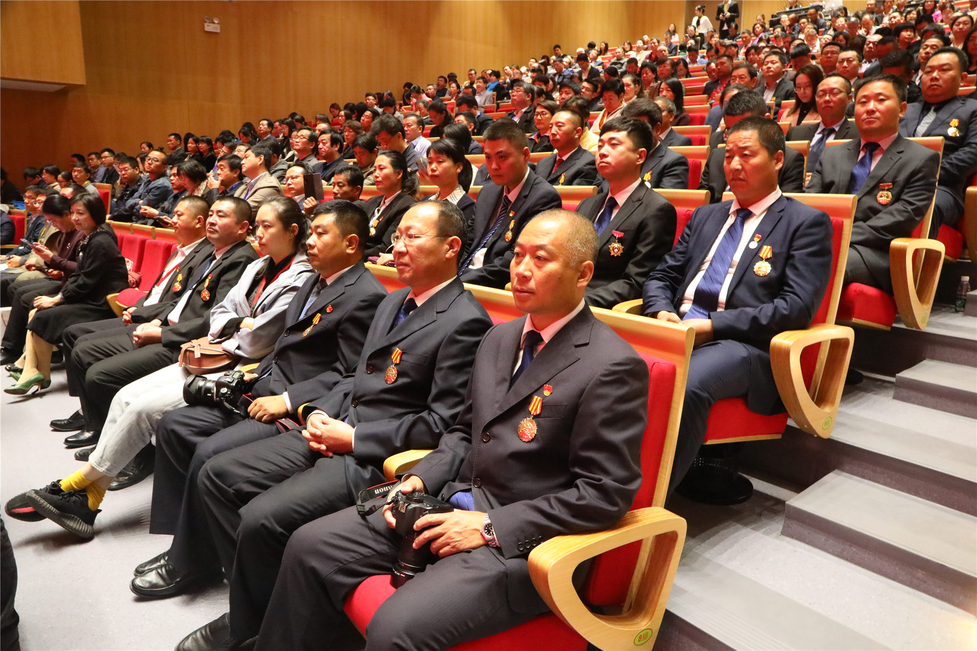 大会隆重进行了向学校建校奠基者代表献花环节。大会向高惠峰、刘淼、王新生、方青、武宗圣、郝清桂、刘子高、赵国荣、郭景田、何生、李敦芷、杨克华、罗简贻、高英杰、王美琪、毕玉身、赵洪恩、杨耀忠18位第一批来校工作的老教师、老干部、老员工致以崇高的敬意,李玉赋书记向参会的11位奠基者代表一一颁发荣誉证书,青年学生代表敬献鲜花。