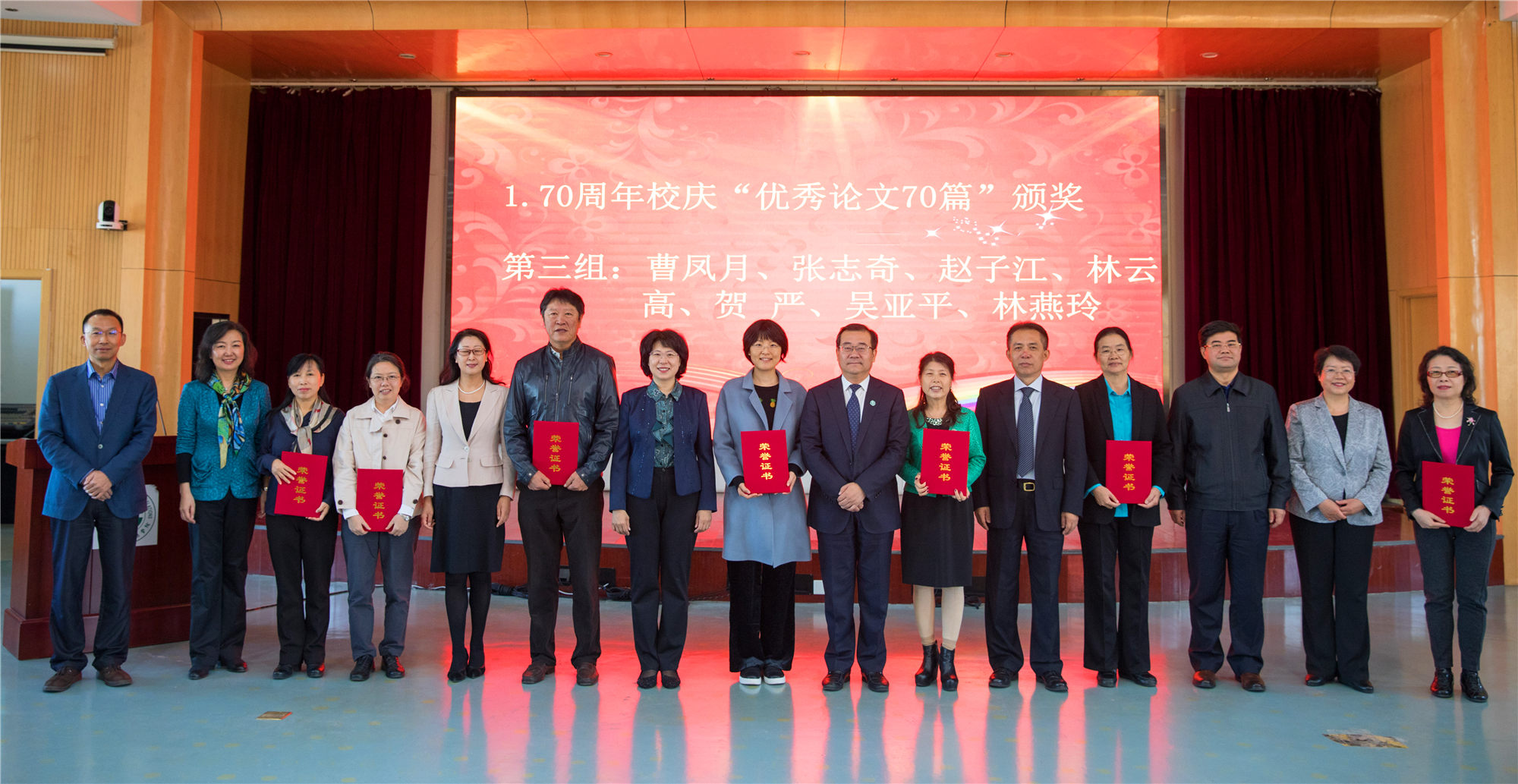 会议隆重举行了颁奖典礼。刘丽红副校长宣读万象城awcsport70周年校庆“优秀论文70篇”和“优秀著作70部”获奖名单。学校领导分别为获奖代表颁奖。