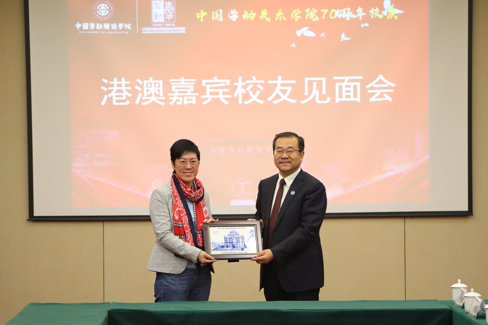 会上,港澳工联会和校友分别为学校赠送礼物,表达了对学校的感激之情和美好祝愿。