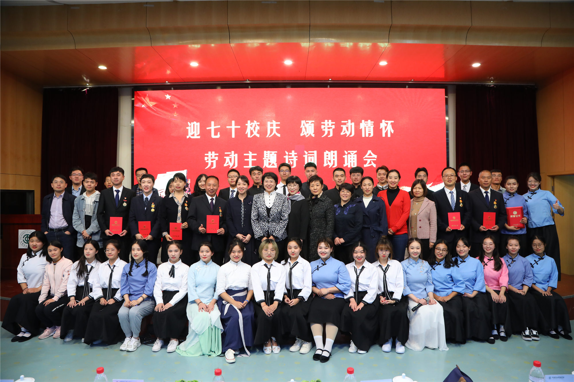 10月16日晚,为落实学校党委“不忘初心、牢记使命”主题教育部署,热烈庆祝建校70周年,营造浓厚的劳动文化氛围,学校在闻道楼508教室举办“迎七十校庆 颂劳动情怀”劳动主题诗词朗诵会。刘丽红副校长出席活动,并与相关职能部门负责人、各学院党总支书记共同担任评委。本专科学生代表、劳模本科班学员代表、离退休教师代表和研究生代表共200余人参加活动。