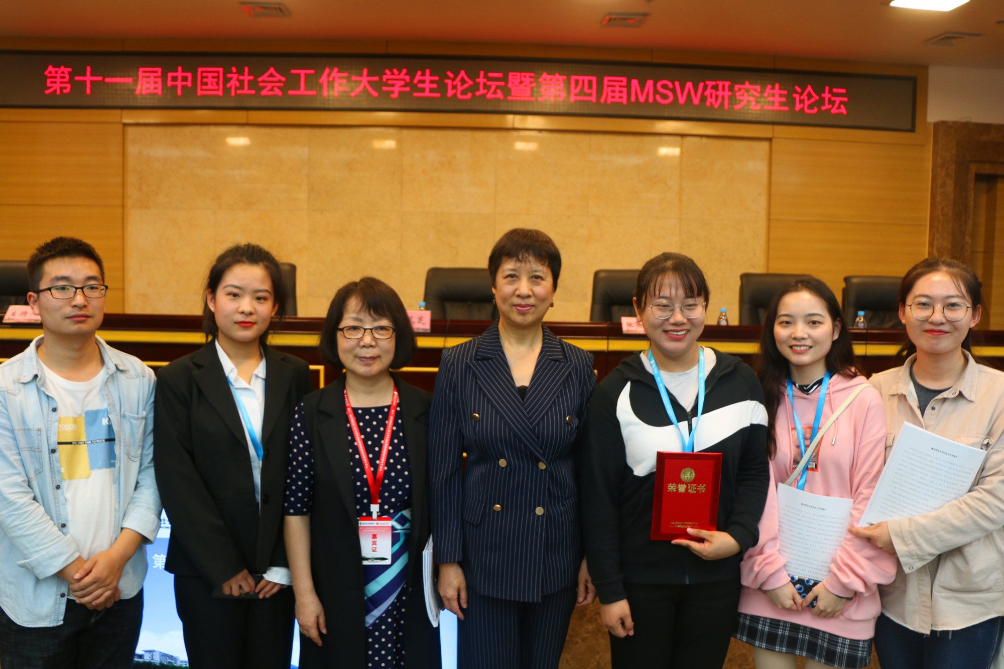 会上,参会学生就社会工作理论和实务方面的内容进行发言。万象城官网周晓彤同学担任了本科生第三分论坛第一阶段的主持人,并在“社会工作实习的实施及效果研究”主题部分作了《社会工作专业本科生在并行实习中的困境研究——以Z高校为例》主旨发言。赵路同学在主题六“社会工作专业领域拓展的实践与经验研究”论坛做了题为《专业社会工作介入劳动争议诉前调解的路径探索》的发言。与会专家充分肯定了他们论文的价值和贡献并提出了完善建议。这些荣誉和成果将激励万象城官网更多社会工作专业的学生参与学术交流活动,推动社会工作专业的发展。