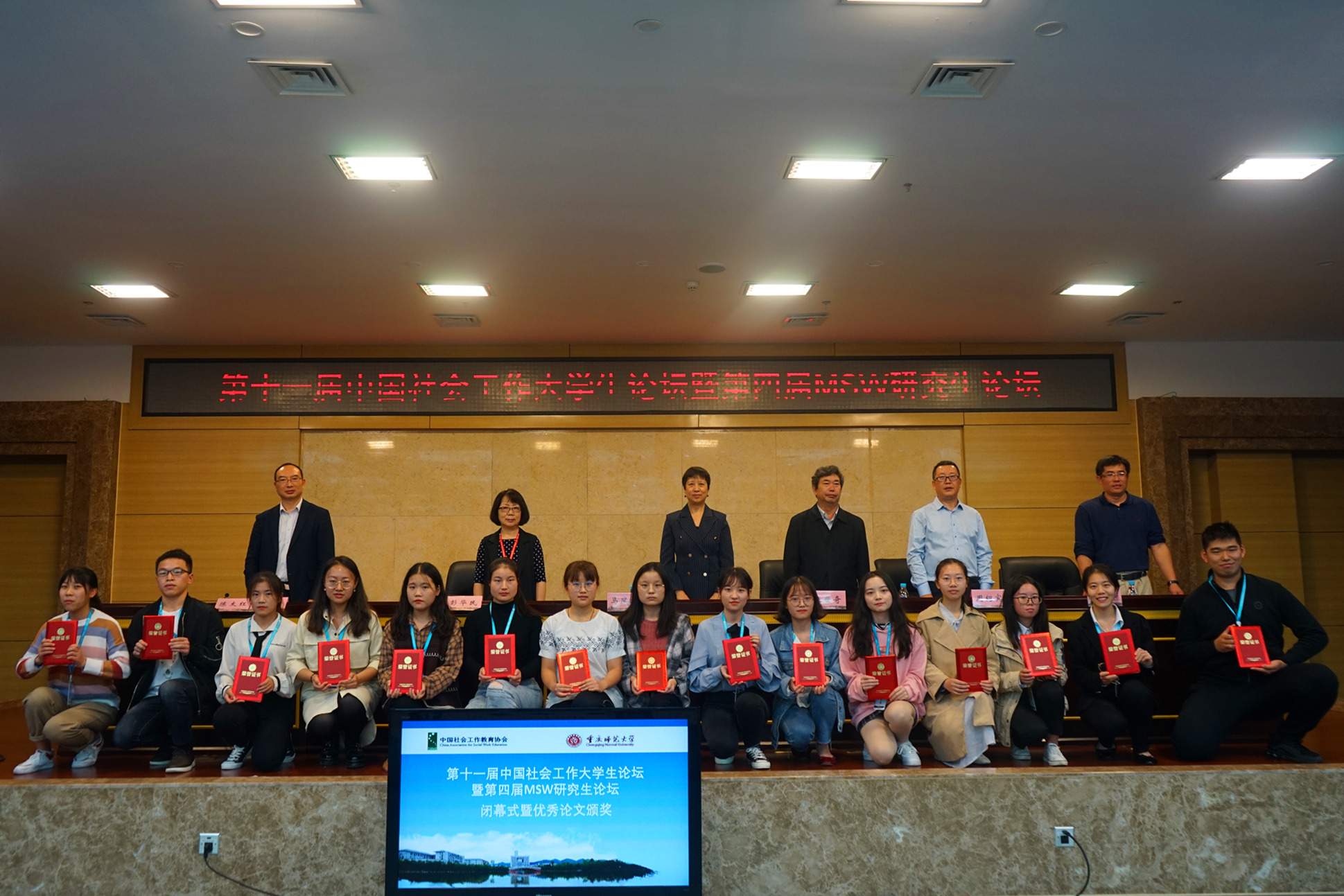 10月12日至13日,第十一届中国社会工作大学生论坛暨第四届MSW研究生论坛在重庆召开。中国社会工作教育协会副会长兼秘书长、北京大学教授马凤芝,中国社会工作教育协会副会长、贵州大学教授庄勇,中国社会工作教育协会副会长、南京大学二级教授、教育部MSW教指委委员彭华民,以及其他高校专家学者、重庆市相关部门负责人等10余人出席开幕式。万象城官网社会工作学院2016级社会工作专业本科生周晓彤和赵路两位同学参会,提交的论文分获二等奖、三等奖。社会工作学院的马红光副教授、刘曦副教授被评为“优秀指导教师”。
