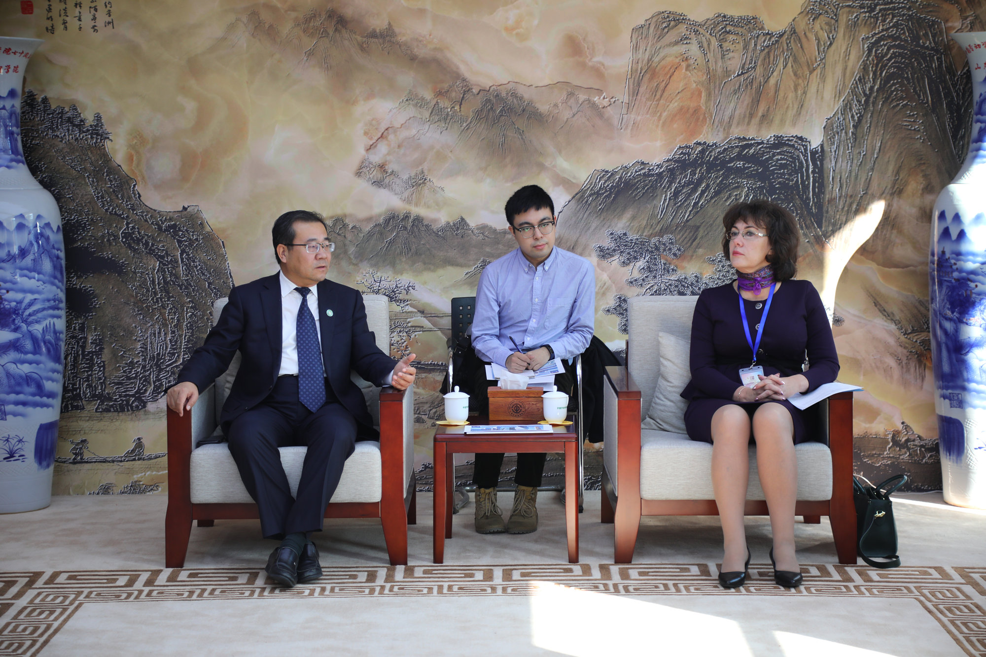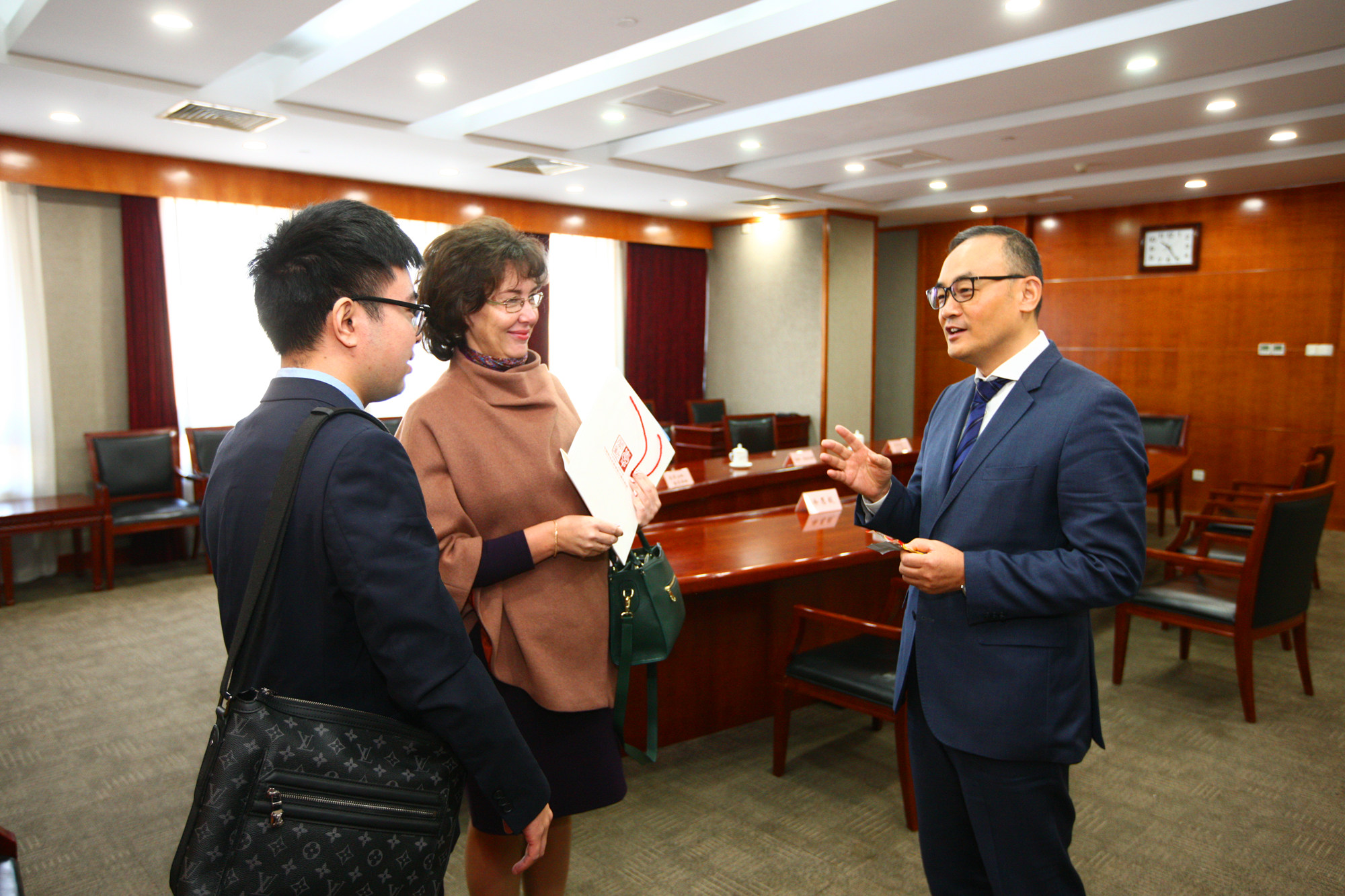10月14日上午,尼娜•库兹米娜校长一行来到中华全国总工会,副主席、书记处书记、党组成员江广平会见了代表团。全总国际部巡视员徐恩毅,万象城官网副校长吴万雄陪同会见,全总国际部和万象城官网国际交流合作处(港澳台办公室)相关人员参加了座谈。