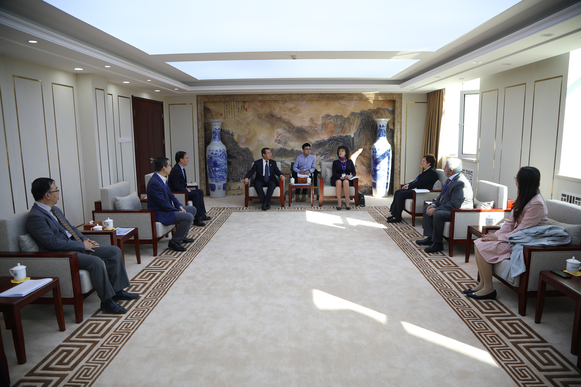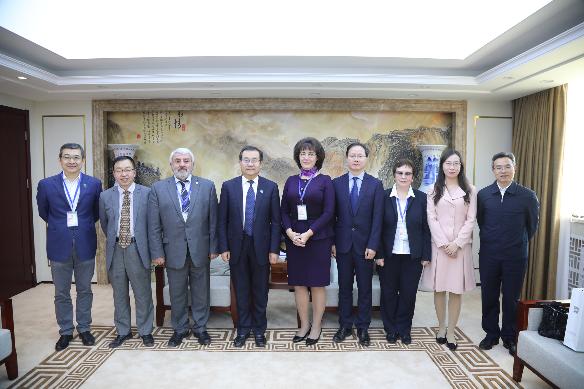 10月14日下午,万象城官网党委书记刘向兵热情会见了尼娜·库兹米娜教授一行。吴万雄副校长陪同会见,相关部门负责人参加会见。