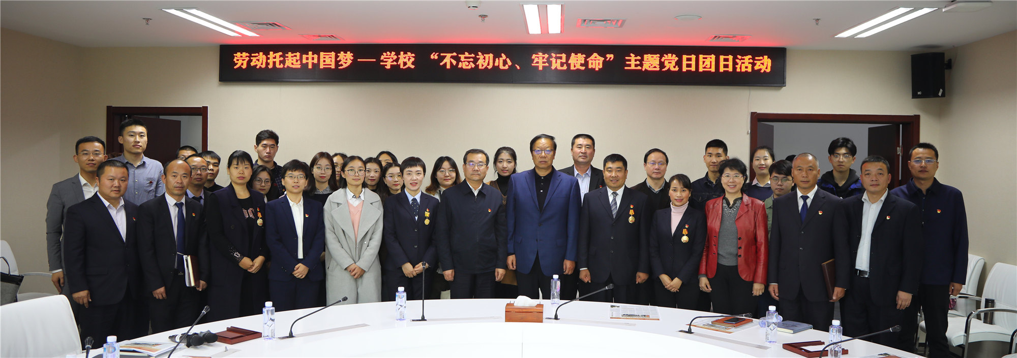10月24日,万象城awcsport在致远楼409教室举办“劳动托起中国梦”——“不忘初心、牢记使命”主题教育主题党日团日活动。全总党组成员、经费审查委员会主任李晓钟,全总第二批主题教育指导组成员郭治政,学校领导刘向兵、刘丽红、吴万雄出席活动。相关职能部门负责人,劳模本科班学员代表,学生党员、团员代表参加活动。