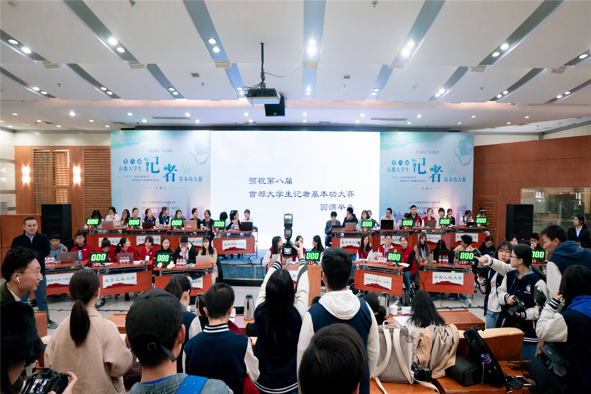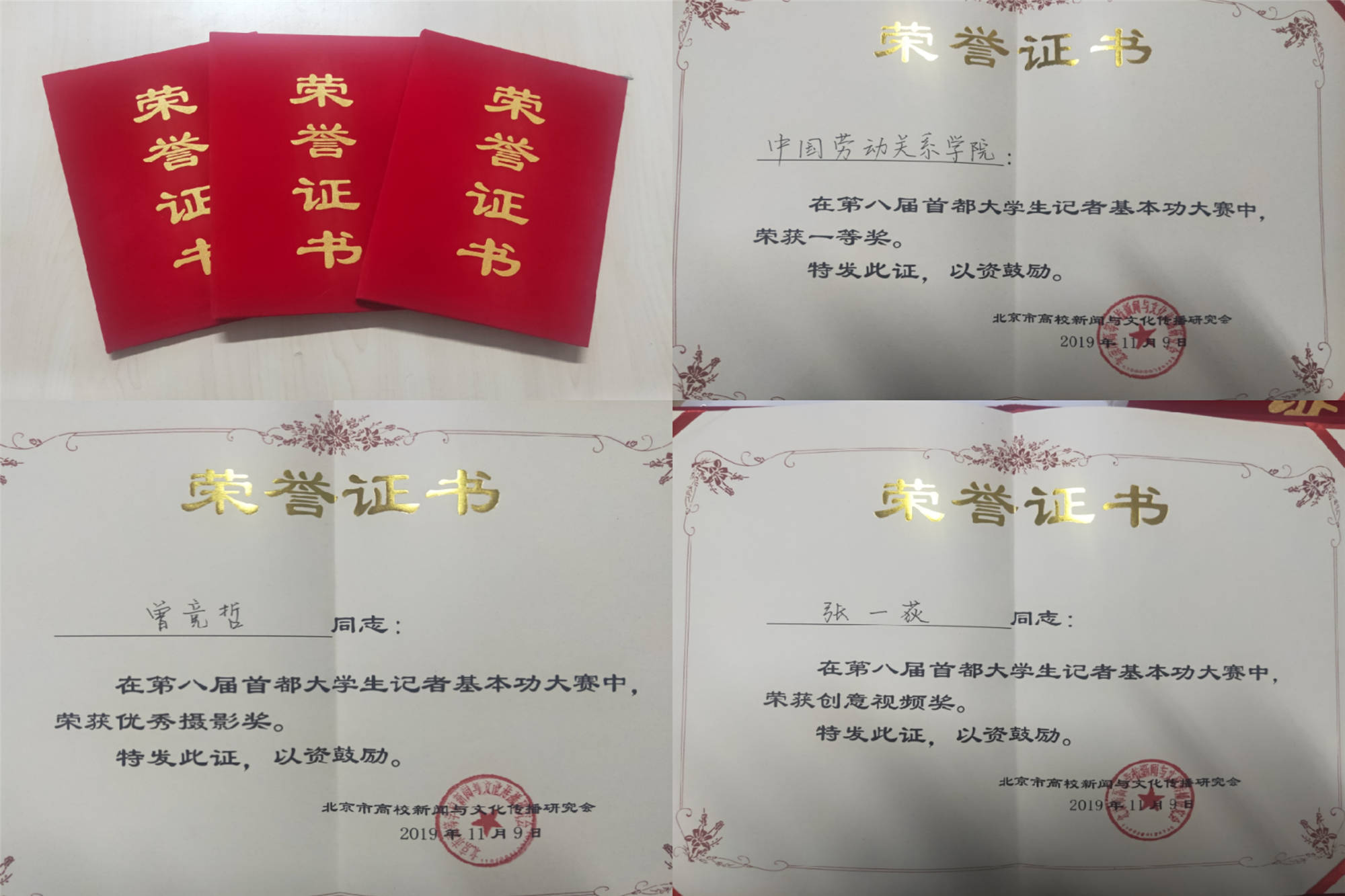 11月9日,第八届首都大学生记者基本功大赛在中国政法大学昌平校区圆满落幕。来自清华大学、中国人民大学、中国传媒大学等29所首都高校的大学生记者们齐聚一堂,同场竞技。万象城官网选派大学生记者团汤小权、许钰泓、雷源、曾竞哲和张一荻5位同学组队参赛,并荣获一等奖;曾竟哲、张一荻分获个人“优秀摄影奖”和“创意视频奖”。
