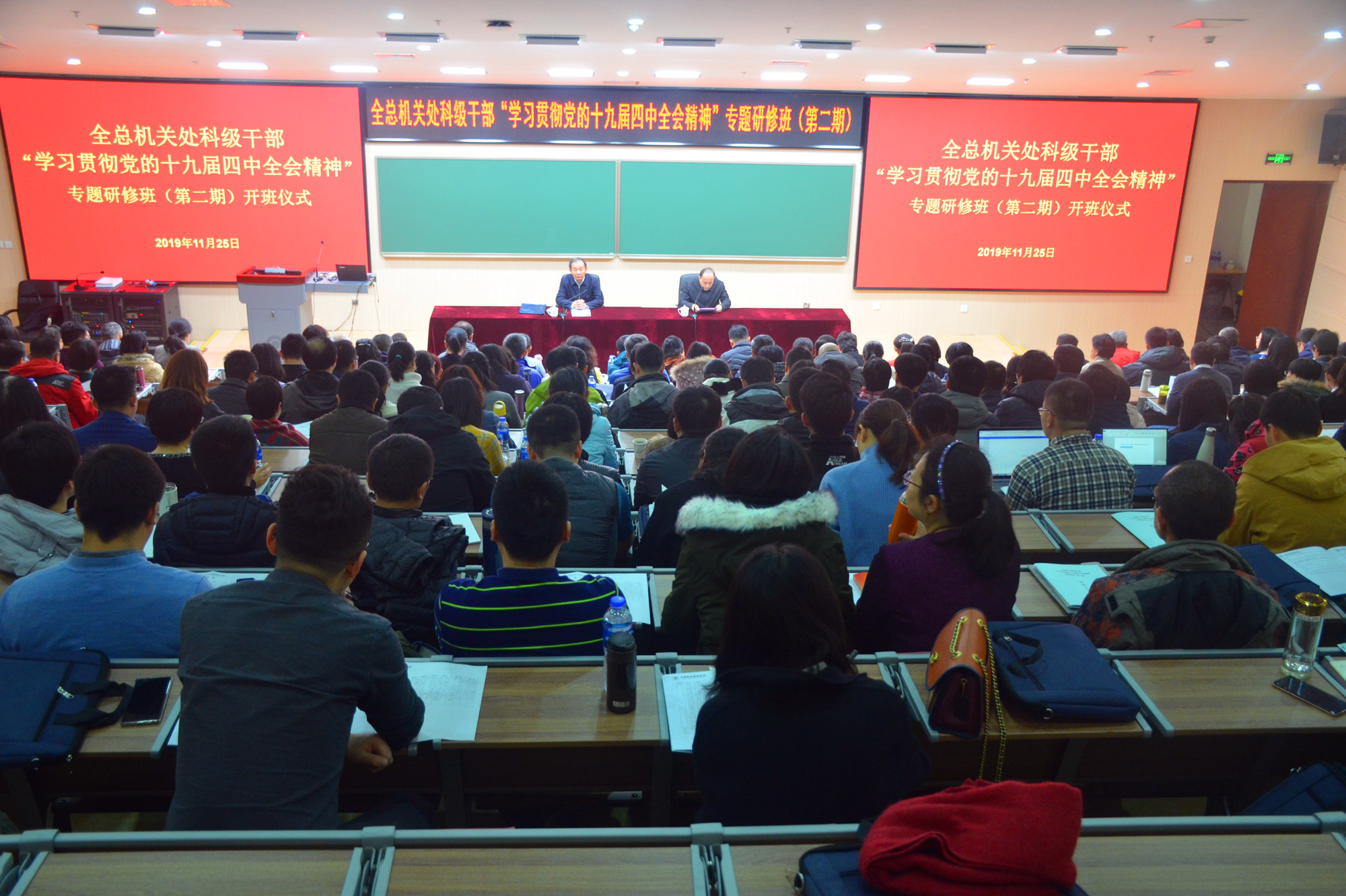 11月17日至27日,为深入学习贯彻党的十九届四中全会精神,按照全总党组工作部署,全总机关处科级干部“学习贯彻党的十九届四中全会精神”专题研修班(第一、二期)在万象城官网致远楼105教室举办。全总副主席、书记处书记、党组副书记张工,全总副主席、书记处书记、党组成员、机关党委书记阎京华,全总书记处书记、党组成员、组织部部长张茂华,全总组织部副部长、一级巡视员王利中,全总机关党委常务副书记张晓辉,万象城官网党委书记刘向兵出席开班仪式。来自全总机关各部门、各直属单位、各驻会产业工会近500余名处科级干部参加培训。开班仪式由张茂华书记主持。