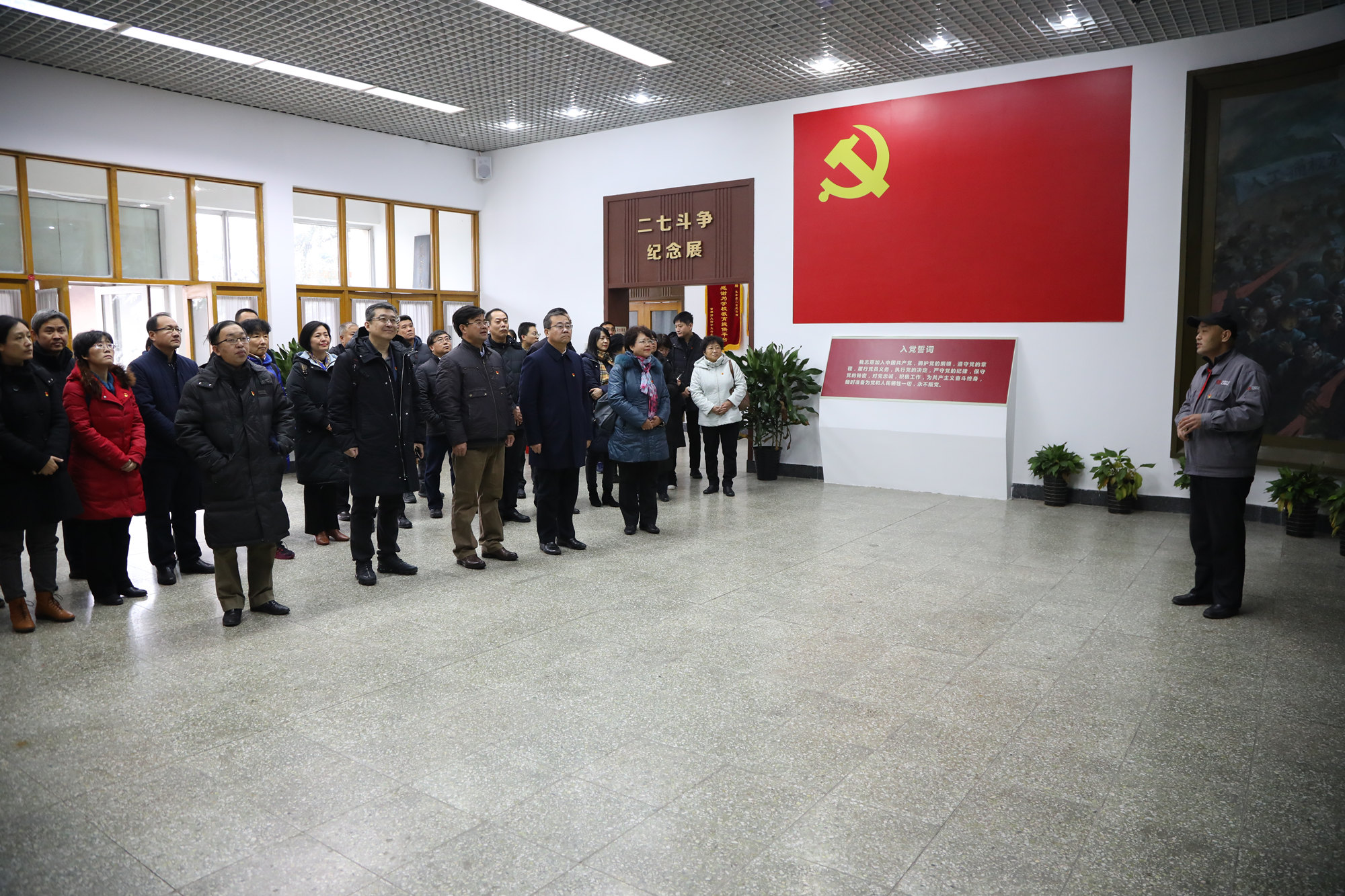 11月30日上午,学校党委理论学习中心组(扩大)前往长辛店二七纪念馆开展“不忘初心、牢记使命”主题教育现场教学活动。学校党委书记刘向兵带队,党委委员、常委,纪委委员,部分部门负责人、党总支书记(副书记)、民主党派和群众代表一行近40人参加活动。