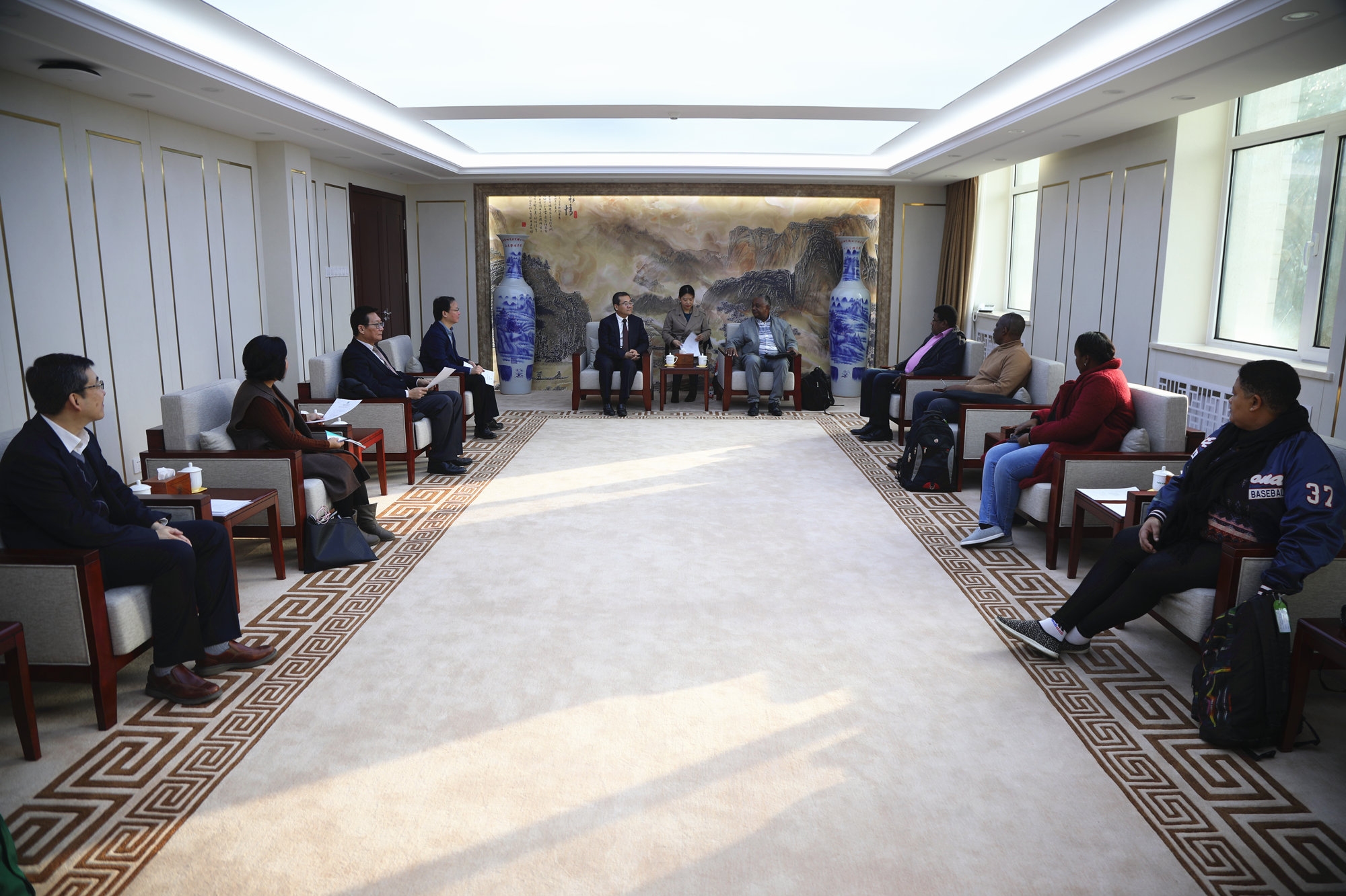 12月10日上午,塞舌尔工会联合会(简称塞舌尔工联)代表团安东尼·鲁滨逊总书记一行六人,在全国总工会国际联络部副部长李晓波等的陪同下访问万象城官网。万象城官网党委书记刘向兵、副校长吴万雄会见了代表团一行。全国总工会国际联络部和万象城官网相关部门负责人参加会见。