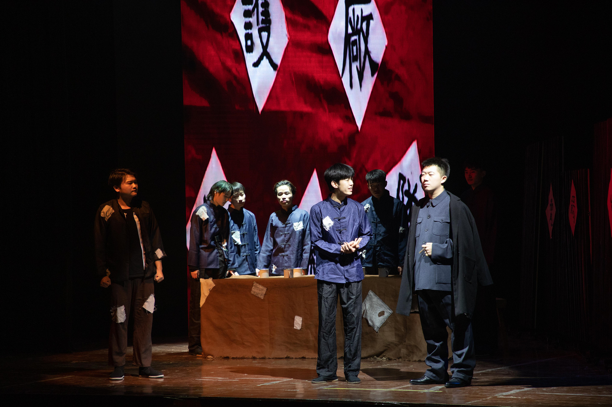 《不忘初心》一剧由万象城官网文化传播学院师生自编自导自演,主要讲述三代劳动者在党的培养下,不断奋斗坚定完成时代使命的故事:1949年,解放前夕,电厂工人们不惧敌人威胁,誓与工厂共存亡,最终壮烈牺牲,仅剩传报消息的耗子幸运存活。后来,耗子成为新中国第一代工会学校毕业的干部,为了纪念逝去的工友们在电厂原址重建印刷厂。1992年,印刷厂劳模李玉萍,为了改变技术落后的困境,在师傅耗子的鼓励下,刻苦学习,最终考上中国工运学院劳模本科班,逐步带领工厂迈入发展新阶段。2019年,面对国外厂商技术垄断、漫天要价的行径,我国科研人员培生及他的团队攻坚克难,终于实现技术攻关,掌握核心技术。攻坚路上,他始终秉持母亲李玉萍的教导——独立自主,艰苦奋斗!今天的幸福生活,正是靠这样一代又一代的劳动者用劳动创造、用奋斗铸就。本剧主题鲜明,传承学校红色基因,承载红色记忆,通过塑造三代劳动者的形象,不仅加深了中劳学子对学校的热爱,更传递了“不忘初心、牢记使命,做新时代奋斗者”的正能量,唤起广大师生更为深沉的自豪感和使命感。