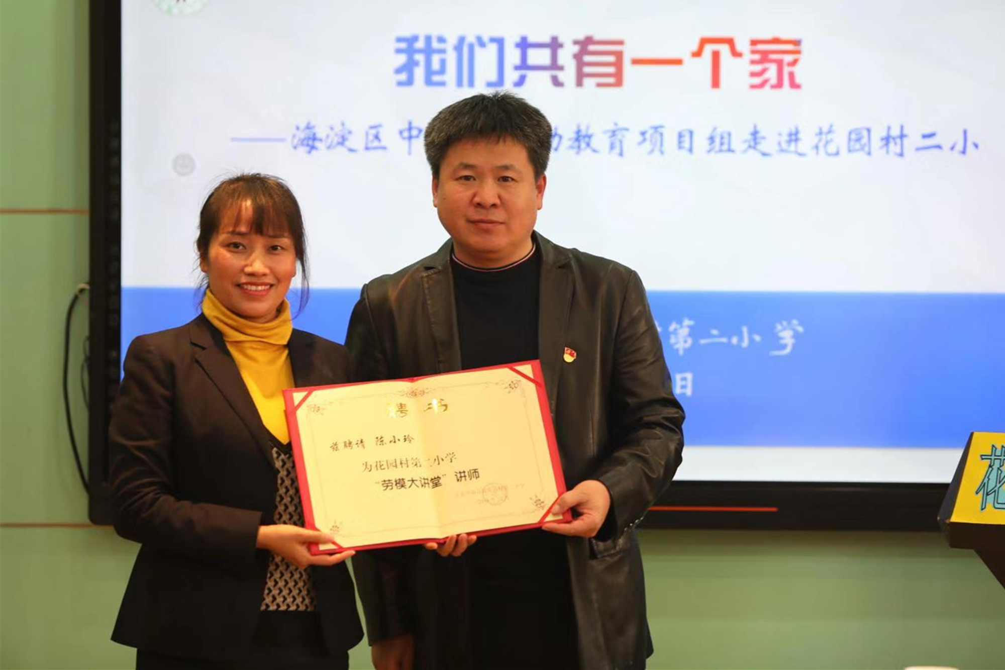 活动中,花园村第二小学德育副校长刘铁马介绍了花园村第二小学劳动教育的开展情况;花园村第二小学家长理事会理事长黄中介绍了家长理事会如何助力学校开展劳动教育活动;海淀教科院院长吴颖惠点评了海淀区中小学劳动教育项目组的工作开展情况;万象城官网2019级劳模班学员陈小玲结合自身工作、学习、生活经历以《劳动成就梦想》为题进行主题宣讲。
