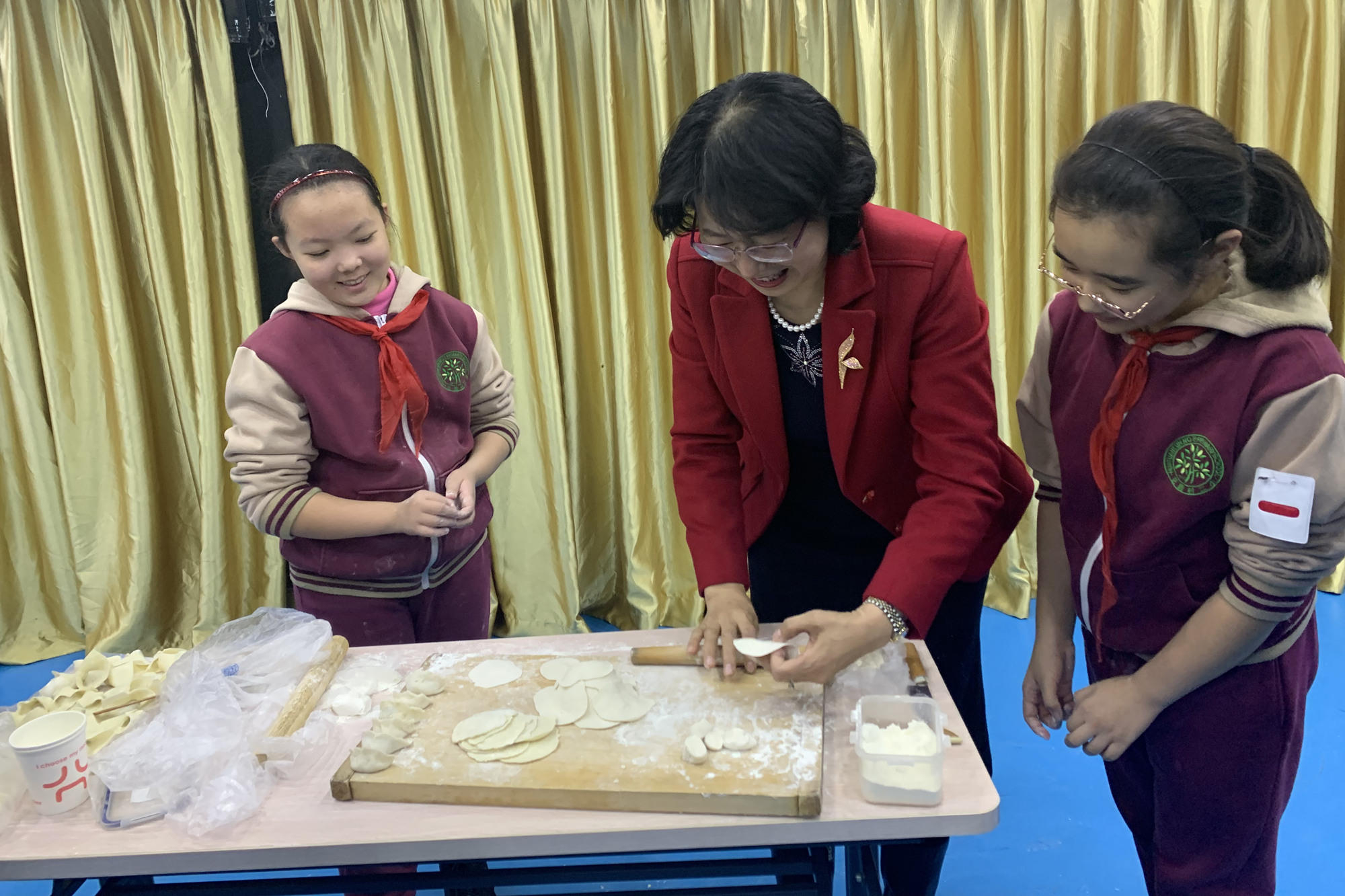 活动前,刘丽红副校长一行参加了花园村第二小学劳动教育模拟游园会。游园会有创客作品交换、劳动成果拍卖会、家庭劳动技能现场秀、劳动教育成果展等活动,场面热烈,处处充满劳动教育的氛围。刘丽红副校长在交流劳动教育开展情况的同时,还与师生一起包饺子、织毛衣,分享劳动教育的收获和快乐。