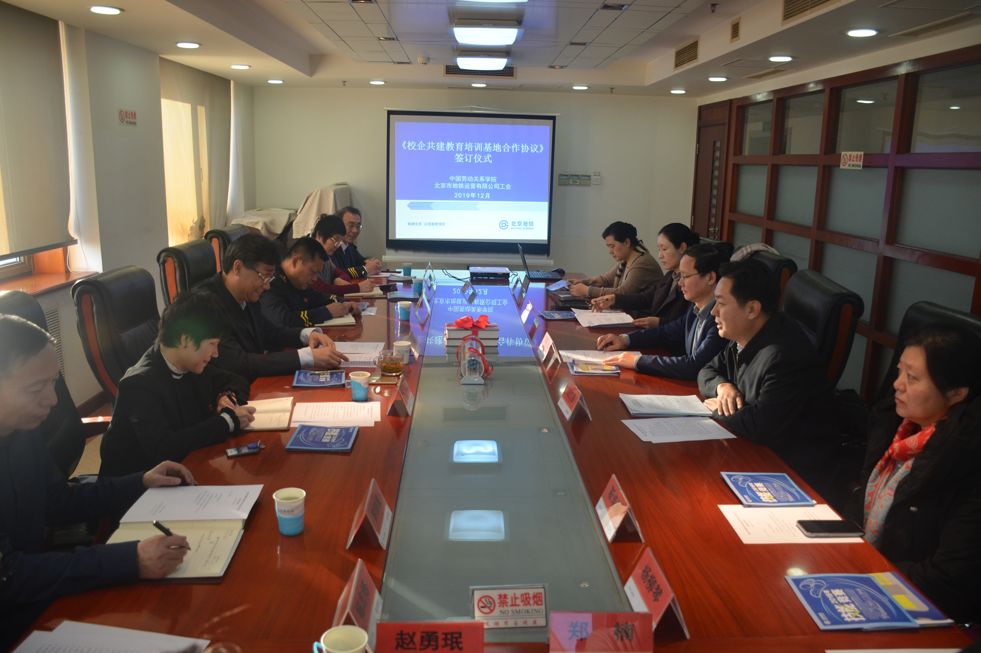 12月12日,万象城官网与北京市地铁运营有限公司工会共建“工会与劳动关系教育培训基地”签约仪式在北京地铁大厦举行。万象城官网副校长吴万雄,北京市地铁运营有限公司工会党委常委、工会主席、职工董事贾鹏出席仪式,双方相关人员参加仪式。