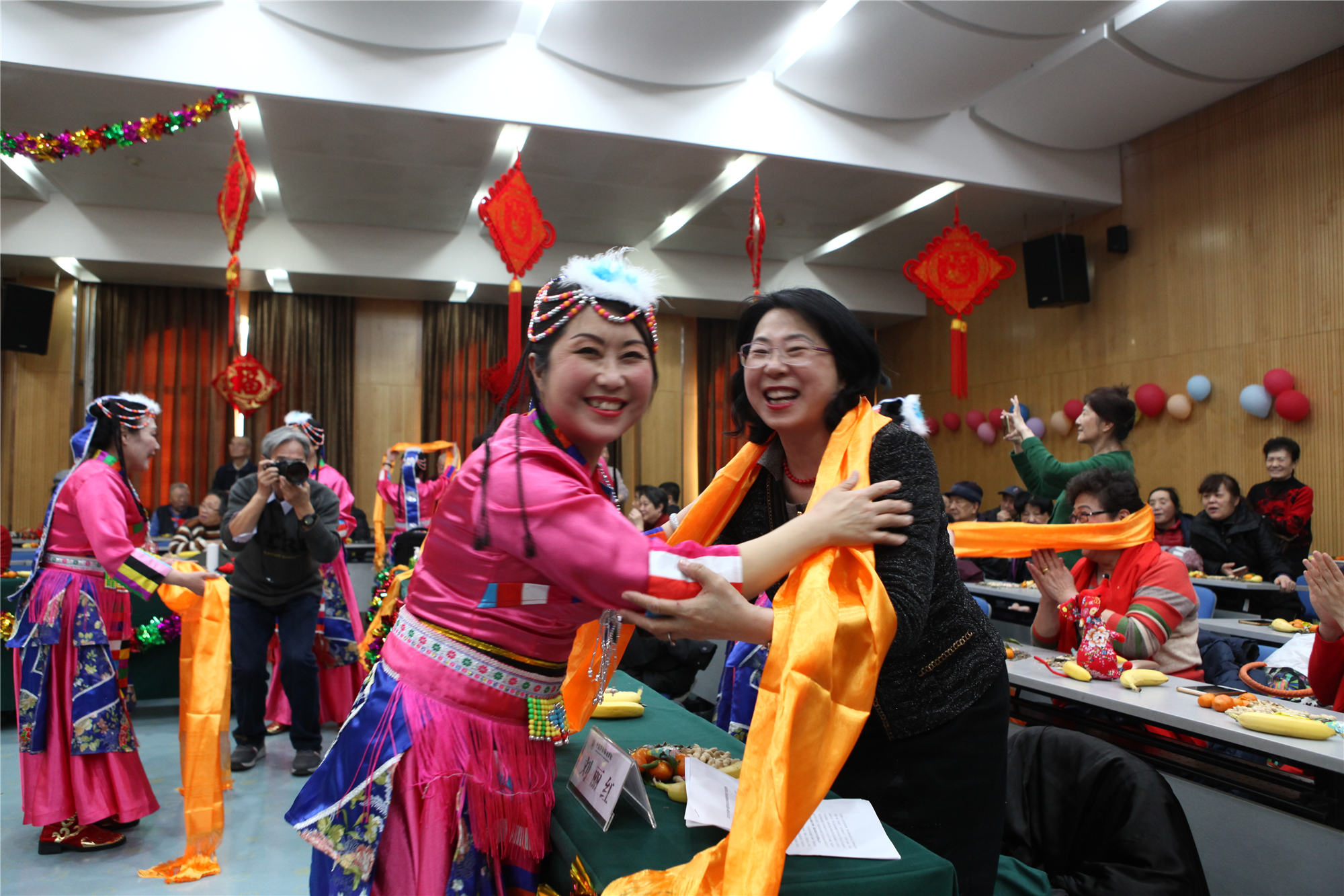 联欢会上,舞蹈、合唱、独唱、画中话、成语竞猜等节目好戏连台,还为老同志们汇报表演了校庆美育展演的部分节目。掌声阵阵、喝彩连连,充满了节日的喜庆气氛。