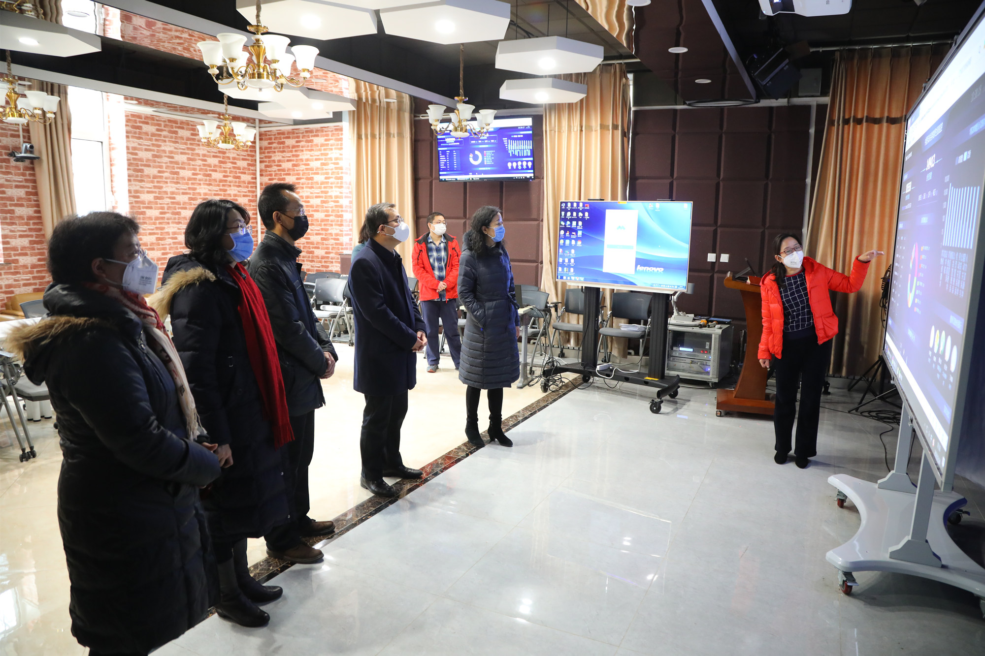 上午,学校党委书记刘向兵,副校长刘玉方、刘丽红,党委常委杨冬梅、姜颖来到闻道楼教研活动中心,集体调研首日在线教学开展情况。学校领导通过超星数据大屏和雨课堂管理端详细了解了教师们线上教学的情况,查看了师生访问、教学资源上传、线上互动、课堂测验等当日实时数据和近期累积数据,与多位参加首日“在线教学”的师生进行视频连线,还进入两位教师的在线课堂调研学生到课率和线上互动情况,观看了利用学校智慧教室录播课程的录制效果。师生们普遍反映,教学平台总体运行平稳,能够保证教学工作顺利开展,并对网络信息技术在促进教学改革、加强学生自主学习方面的教学效果表示认可。刘向兵书记亲切慰问了坚守在教学一线的广大教师,代表学校党委对教务处和各教学院部组织筹备工作予以高度肯定,并希望大家继续坚持,持续做好特殊时期在线教学和相关保障工作,确保教学管理要求不放松、教学质量标准不降低。