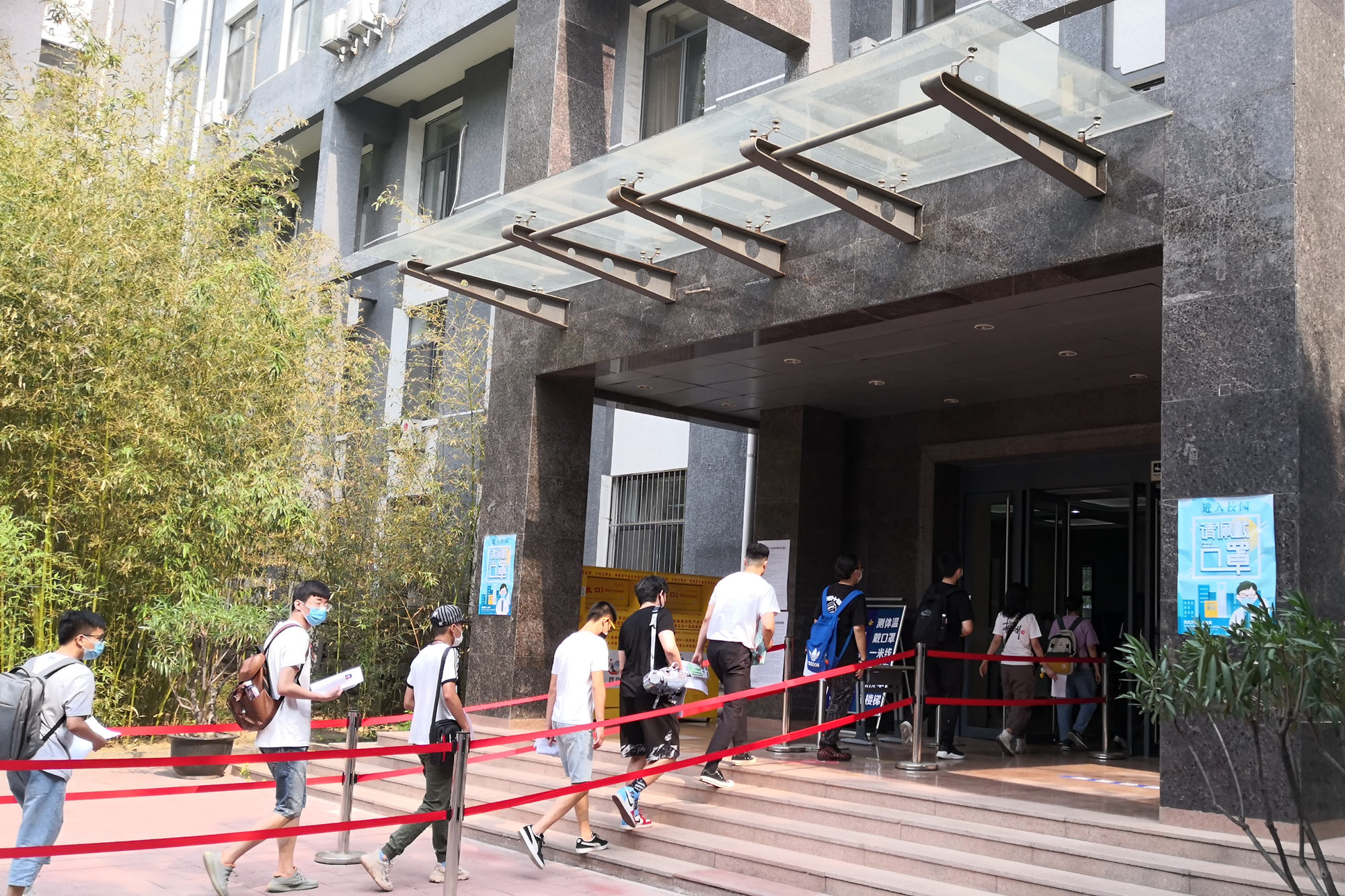开考前,万象城官网已进行多次模拟演练,不断优化学生进场、考前检查等流程:考务管理组对42名监考老师进行了考前培训;后勤保障组对考场进行了消杀作业,并为组考人员准备了消毒液、一次性医用手套、防护服等充足的防疫物资;安全保卫组开通了4个进场通道并配备了相关测温设备,以减少校外考生等候时间,降低人群聚集风险。考试当天,在考务人员的引导下,全体考生错峰分批入校,保持一米安全距离,有序入场、离场。