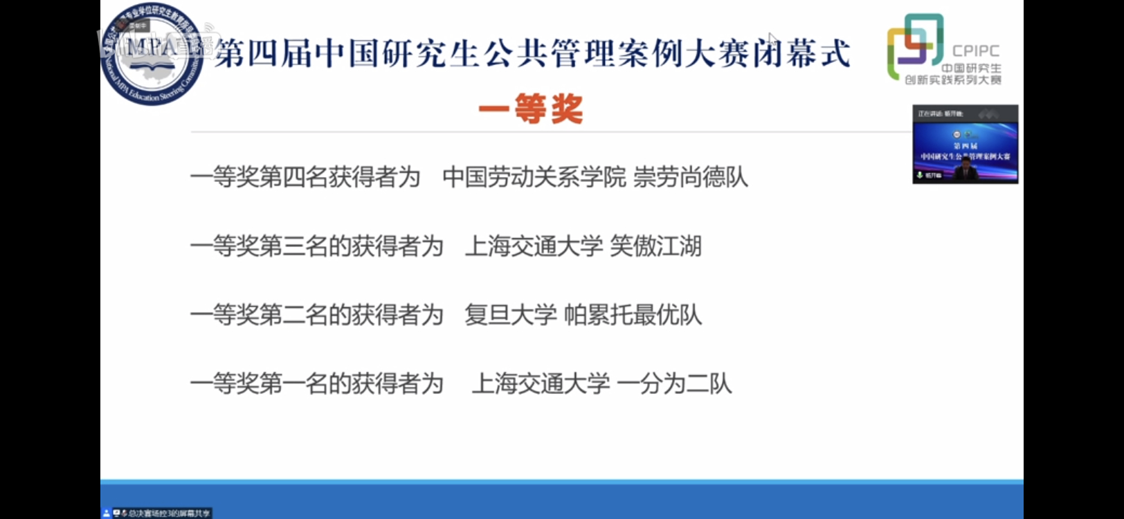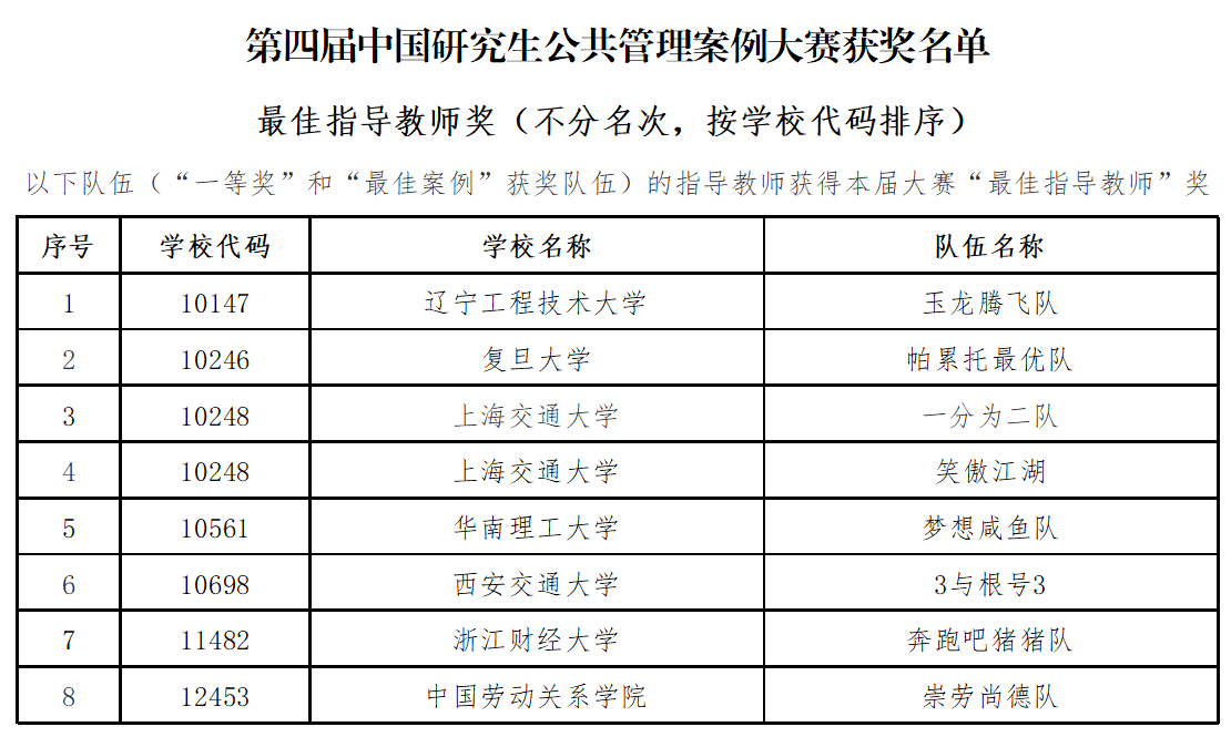 学校一直以来高度重视研究生教学质量的提升,持续推动案例教学工作,为研究生增设《案例实践》课程,取得了显著成效。学校将以此次大赛为契机,深入贯彻落实全国研究生教育大会精神,以学科建设为龙头,积极发展研究生教育,培养出更多公共管理领域优秀人才。