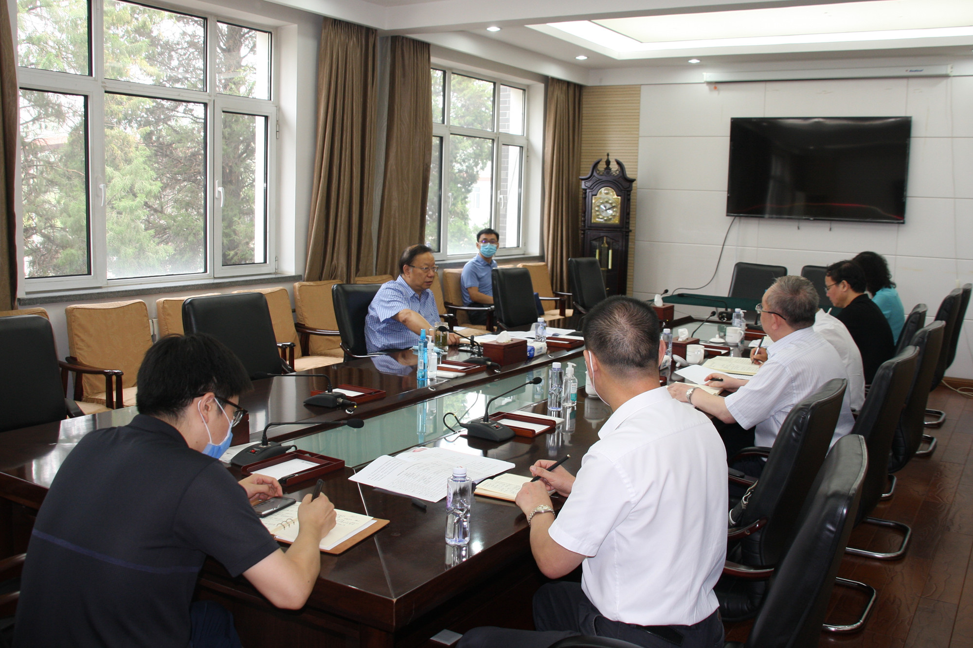 李晓钟主任在讲话中强调,学校要继续保持高度重视,严格做好疫情防控,确保师生健康,切实做好返校复课准备。他对下一步工作提出三点要求:一是要进一步将工作做细,认真梳理疫情防控形势下返校复课可能存在的问题、困难,切实做好应对预案;二是要强化担当,加强协调配合,确保责任到人;三是要勇于创新,在疫情防控常态化背景之下,抓住机遇,加快制度建设,提升管理水平,转危为机。