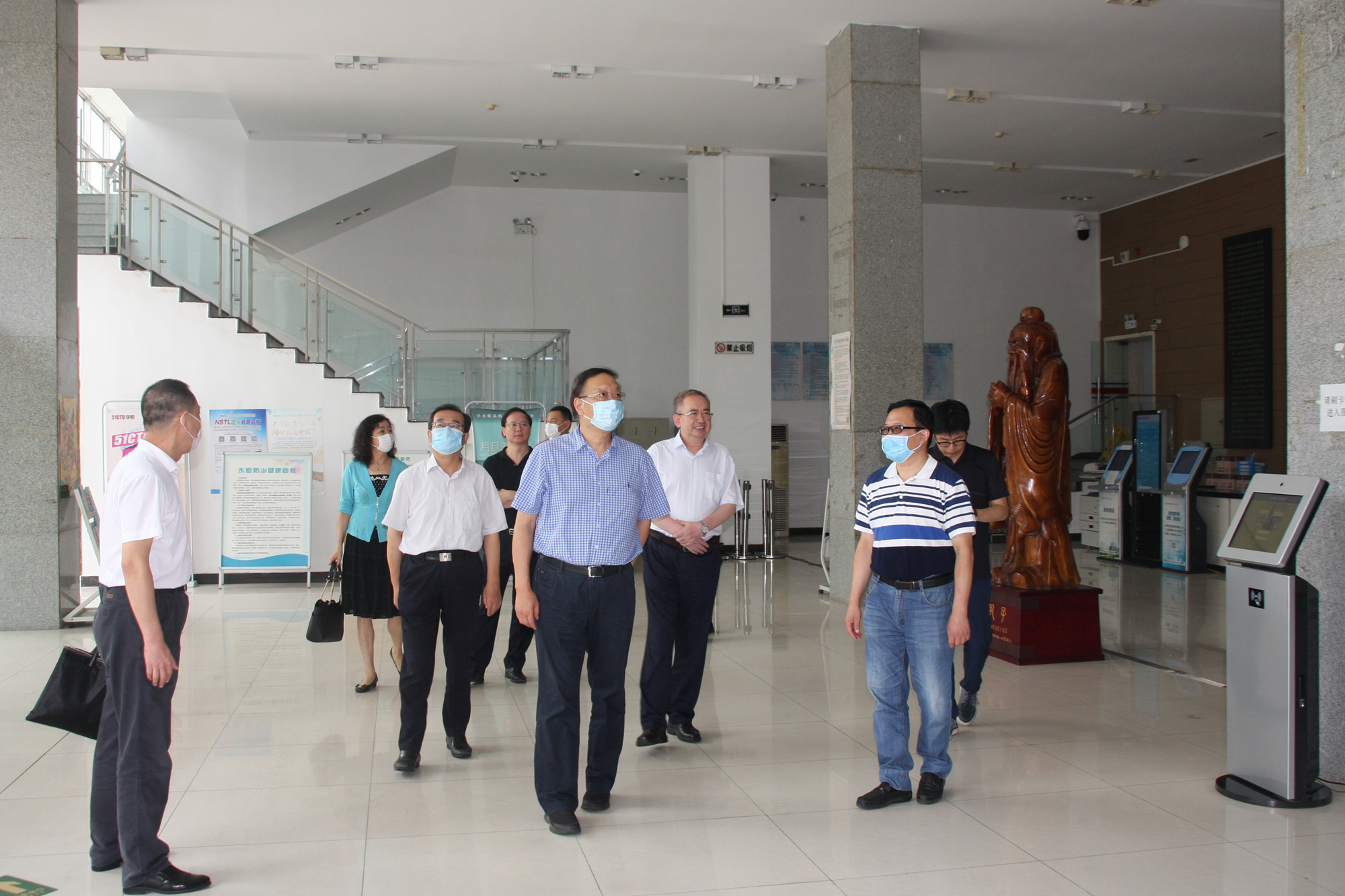 8月26日,全总党组成员、经费审查委员会主任李晓钟到涿州校区调研指导学生返校复课和疫情防控工作。学校领导刘向兵、傅德印、吴万雄,党委常委姜颖陪同视察,相关职能部门负责人进行现场讲解。