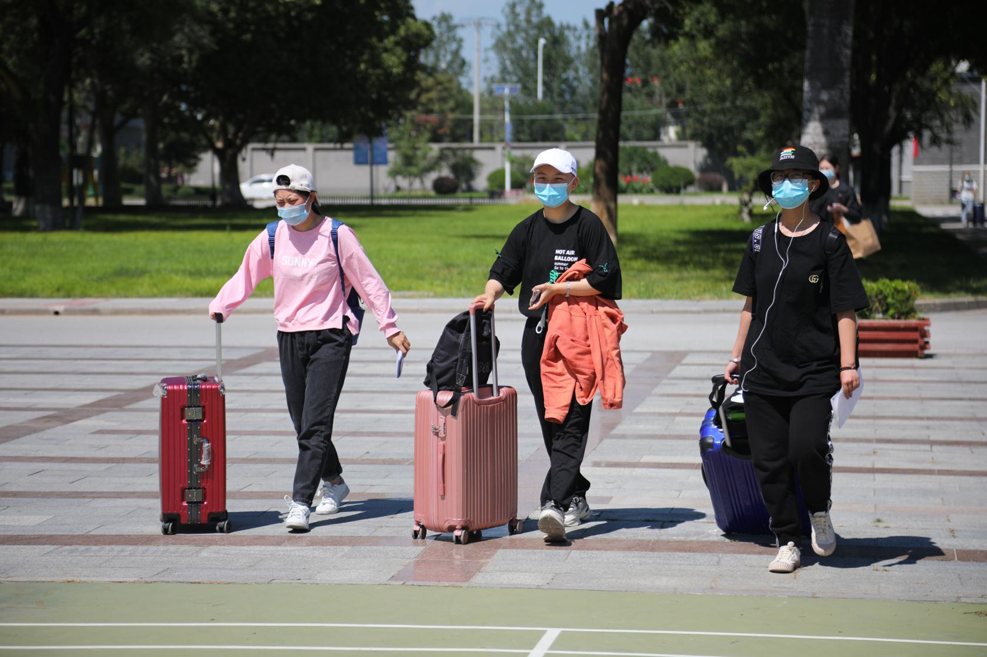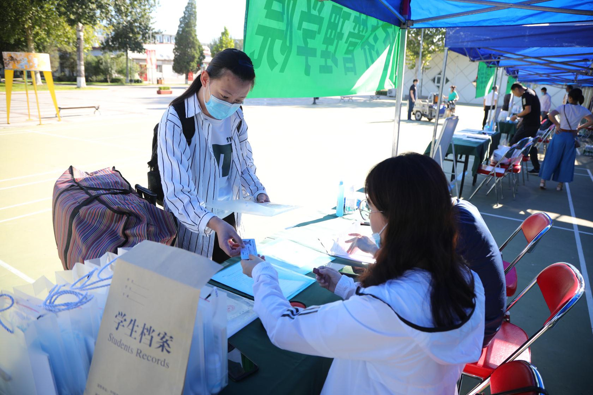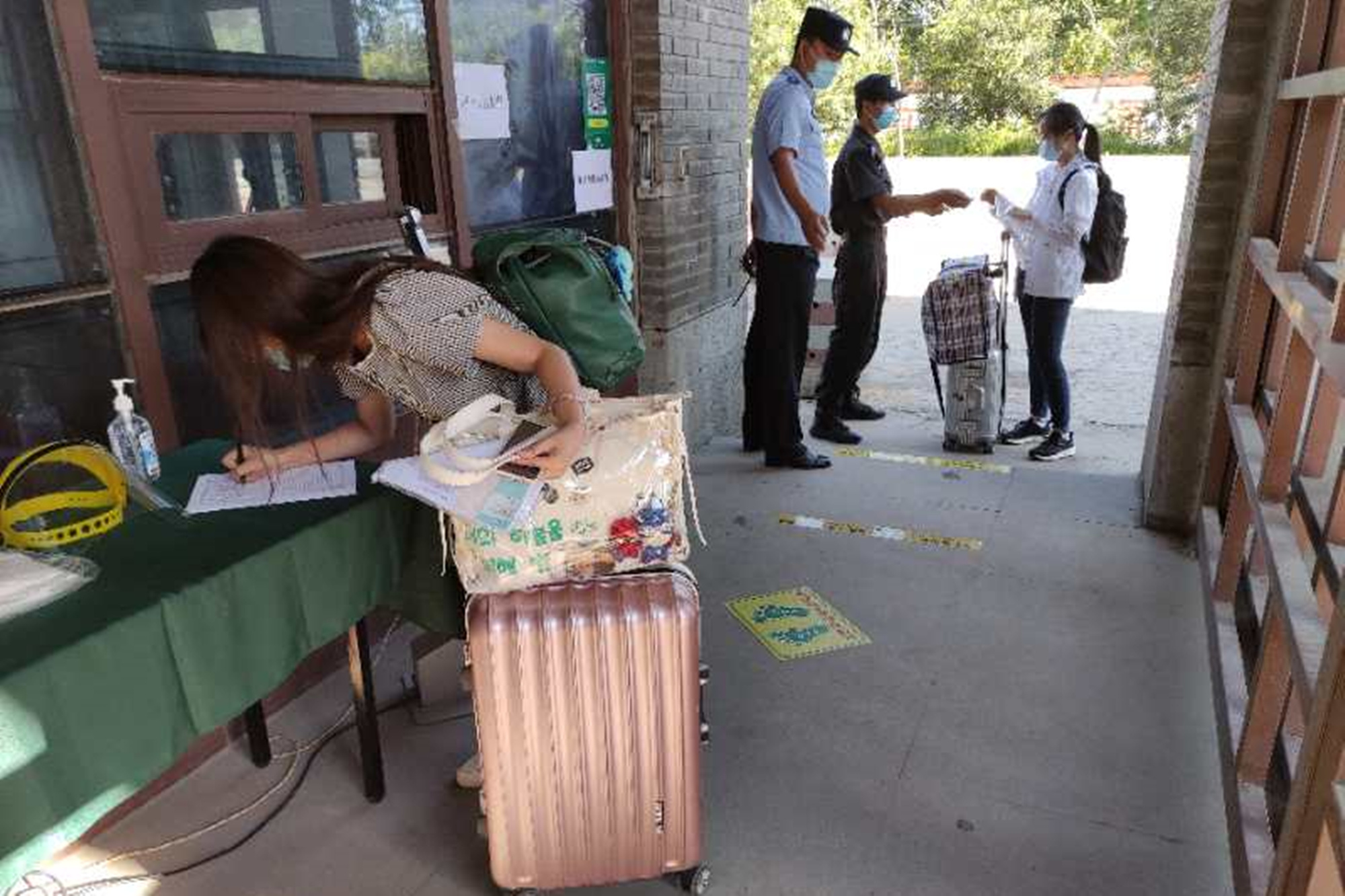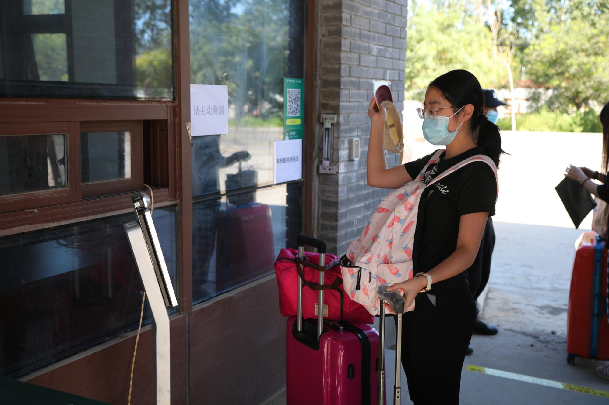 首批返校报到的学生们认真落实疫情防控要求,进校前主动佩戴好口罩,在老师和学生志愿者协助下,完成行李、手部消毒,接受体温检测,并出示健康码通行“绿码”后,依次有序进入校园,开启新学期的学习生活。