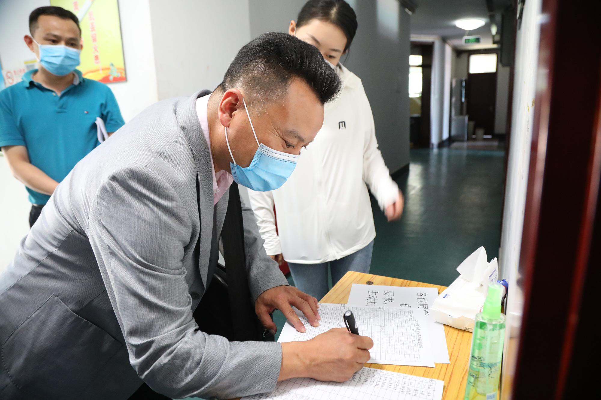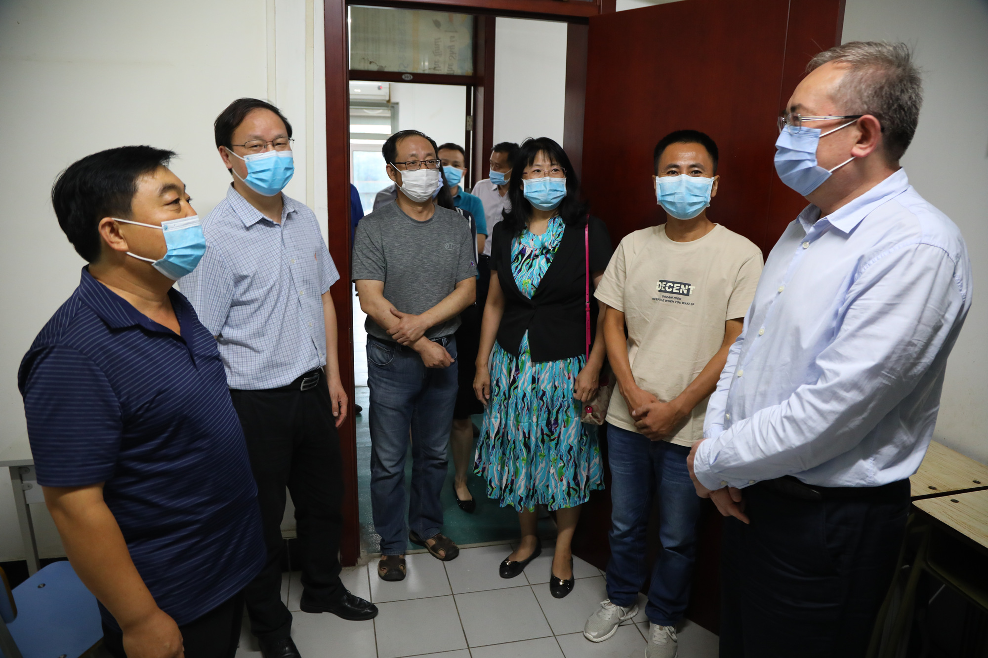 9月2日下午,学校领导傅德印、刘丽红、吴万雄前往劳模公寓,看望返校劳模学员,检查指导返校复课和疫情防控工作。
