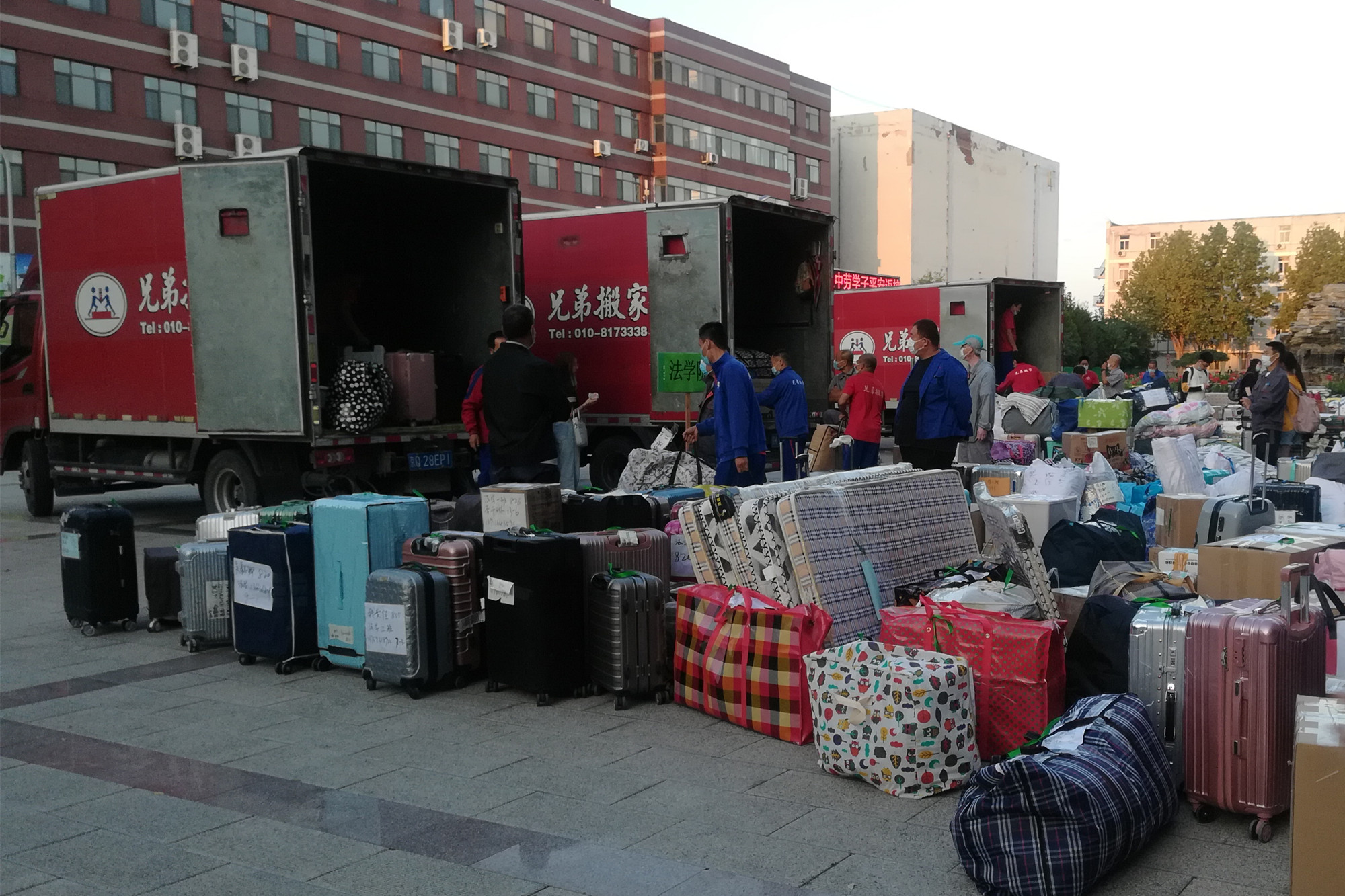本次学生从涿州校区返回北京校区正值疫情期间,学校高度重视,精心安排客车30辆、货车71辆以及保安、物业员工、交通科司机等共计220人参与返京搬运工作,全力保障学生平安搬入北京校区。