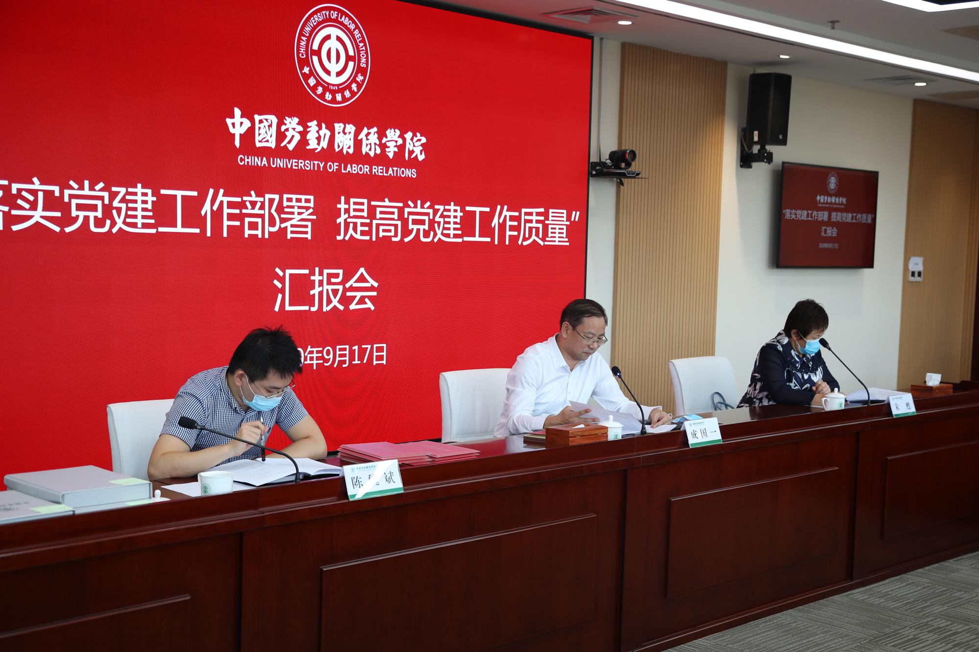 刘向兵书记代表学校党委作党建工作专项汇报。他指出,近年来,在全总党组的坚强领导和大力支持下,在全总机关党委的直接领导和悉心指导下,学校党委认真履行党建主体责任,自觉承担起全面从严治党的政治责任,坚持社会主义办学方向,为学校发展建设提供了坚强的政治保障。他从持续推动全面从严治党向纵深发展,始终在思想上政治上行动上与以习近平同志为核心的党中央保持高度一致;注重学懂弄通做实,推动学习习近平新时代中国特色社会主义思想往深里走、往心里走、往实里走;把疫情防控作为最重要最紧迫的工作,引领党员干部为实现疫情防控和办学治校发展双胜利作贡献;突出抓基层提质量,激活建强学校党的基层组织;深化作风和纪律建设,努力营造风清气正的良好政治生态;学校党建工作存在的突出问题和实际困难等方面进行详细汇报。他表示,下一步,学校党委将坚决贯彻党中央关于全面从严治党的决策部署,增强“四个意识”,坚定“四个自信”,做到“两个维护”,围绕全总工作部署和学校总体规划,埋头苦干、锐意进取,统筹推进常态化疫情防控和学校建设发展双任务,推动学校各项工作取得新发展、新突破,高质量完成好全年工作目标任务,全面夺取疫情防控和办校强校双胜利。