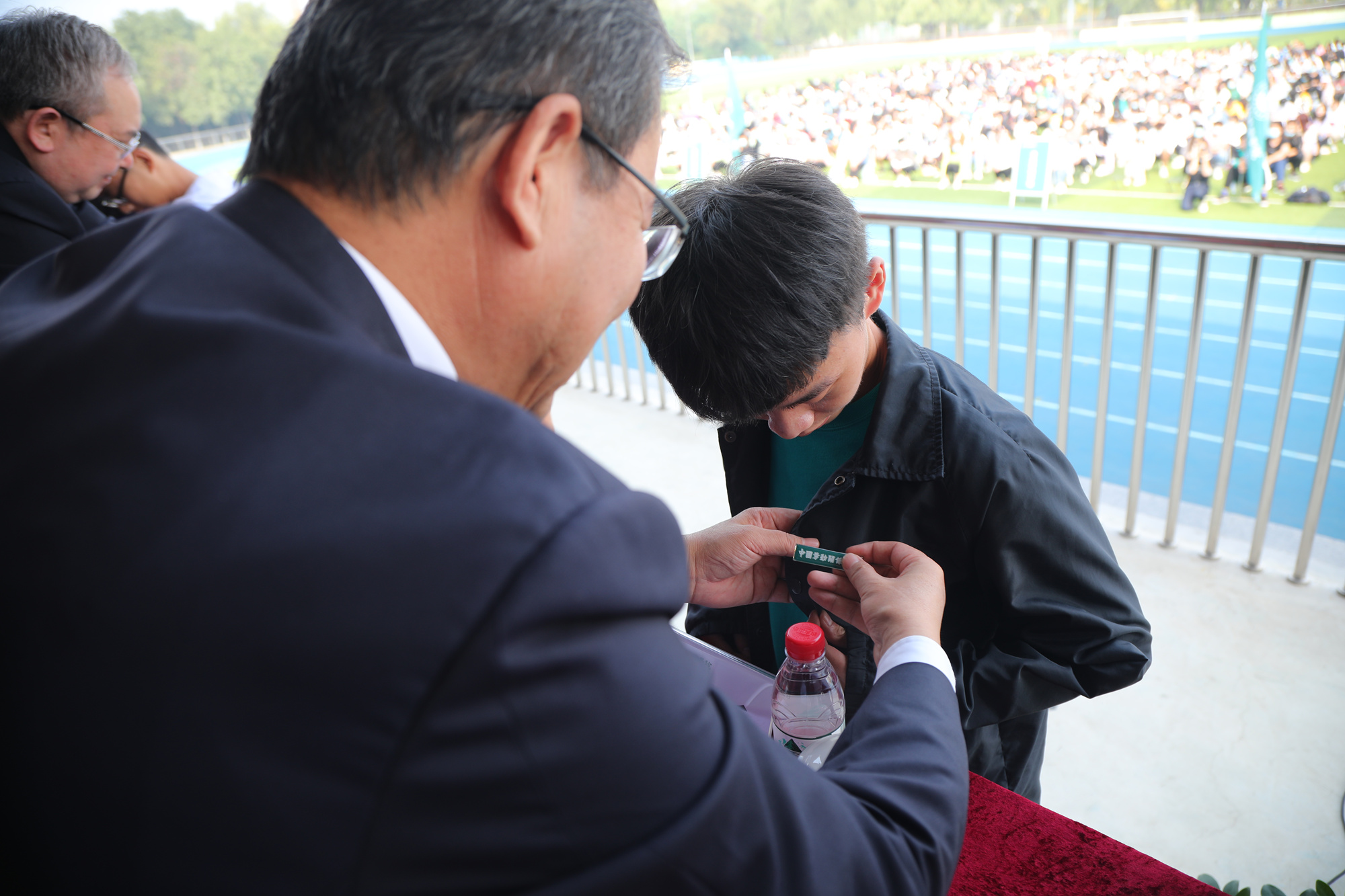 典礼上,学校首次举行的佩戴校徽仪式成为一大亮点。学校领导一一为2020级学生代表佩戴校徽,让新生们有了归属感和使命感。这枚校徽,不仅代表着大家的命运和学校更加紧密地联系在了一起,更是提醒同学们牢记“立德守正、崇劳创新”的使命,践行“刚健创新、和而不同”的校训,做一个真正的 “中劳人”!