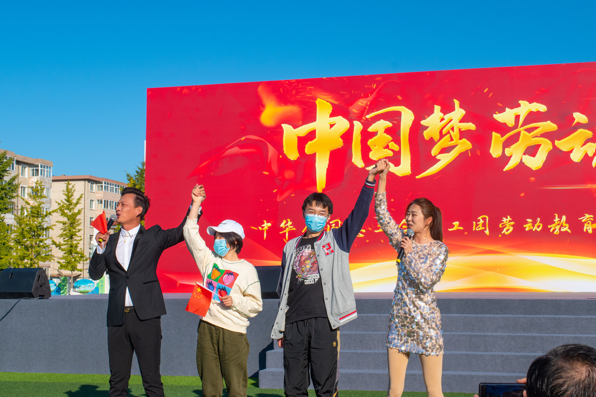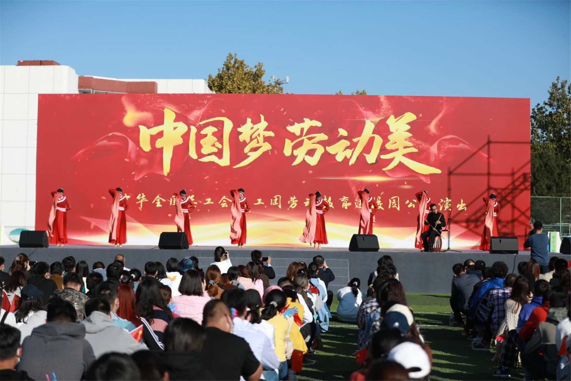 10月16日下午,为认真贯彻落实全国总工会《关于在全面加强新时代劳动教育中充分发挥工会组织作用的指导意见》精神,深化“中国梦 劳动美”主题宣传教育,引导学生尊重普通劳动者,体认劳动不分贵贱,培养勤俭奋斗创新奉献的劳动精神,“中国梦 劳动美”全总文工团劳动教育进校园公益演出活动在万象城官网涿州校区圆满举办。全总文工团党委书记、团长孙文彬,常务副团长陈思思,万象城官网党委书记刘向兵,副校长刘丽红、吴万雄出席活动,与部分职能部门负责人,各学院党总支书记、辅导员等近千名师生共同观看节目。