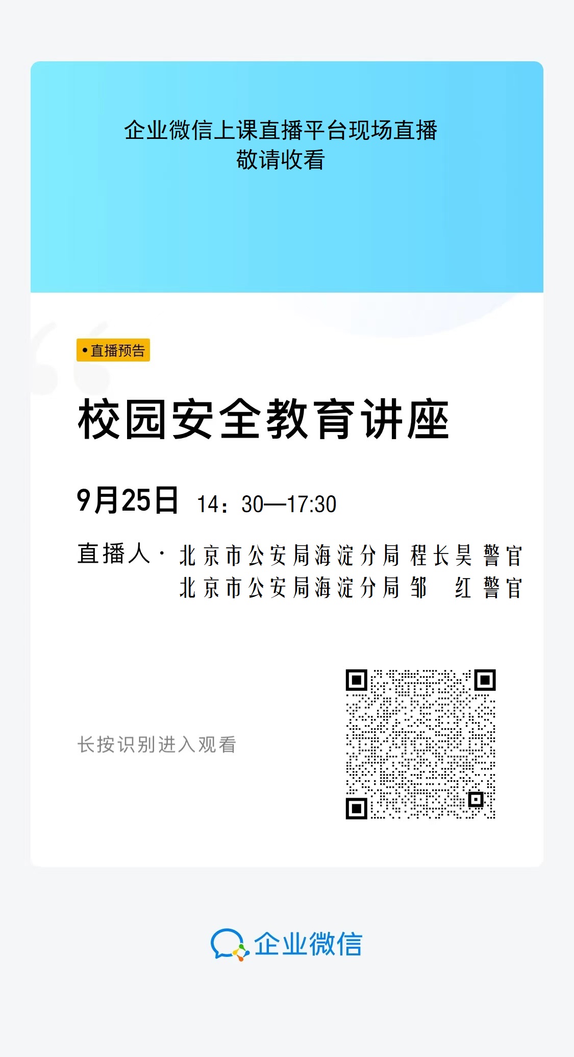 地点:企业微信上课直播平台
