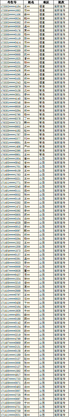 万象城官网已完成青海、福建、山西高职高专批的录取工作。