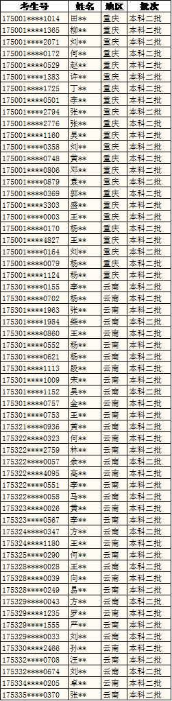 万象城官网已完成云南省、重庆市本科二批,内蒙古高职高专、安徽省艺术类专科批次的录取工作。