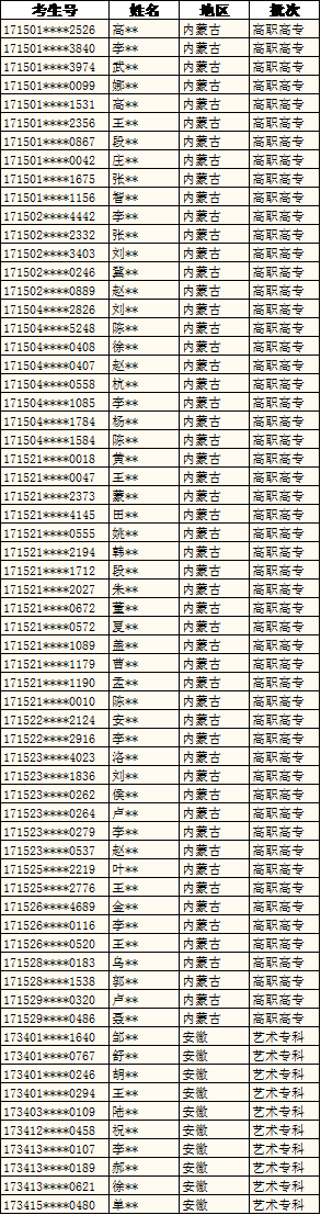 内蒙古高职高专批次最低录取分数:300(文史)、259(理工)